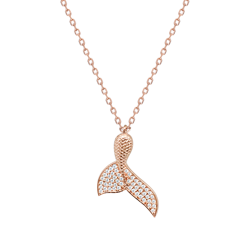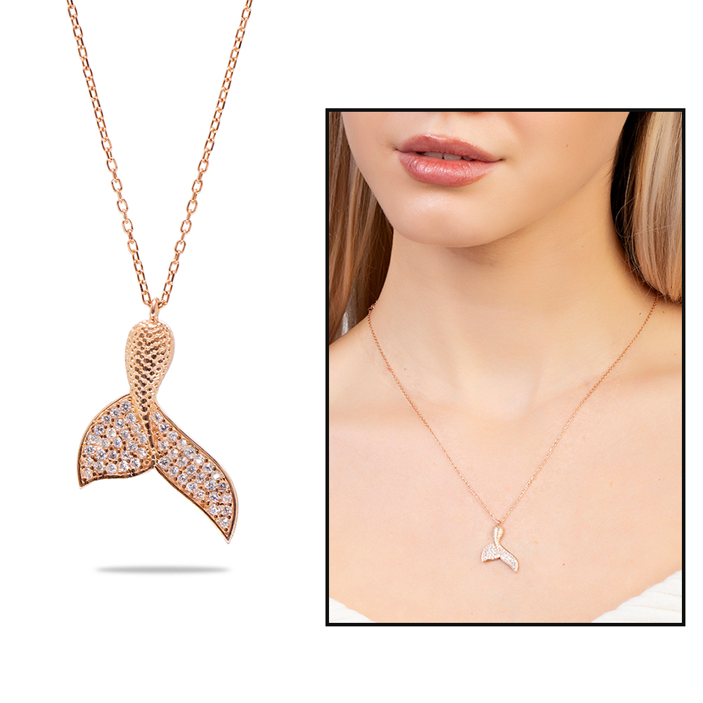 Beyaz Zirkon Taşlı Balina Kuyruğu Tasarım Rose Renk 925 Ayar Gümüş Kadın Kolye