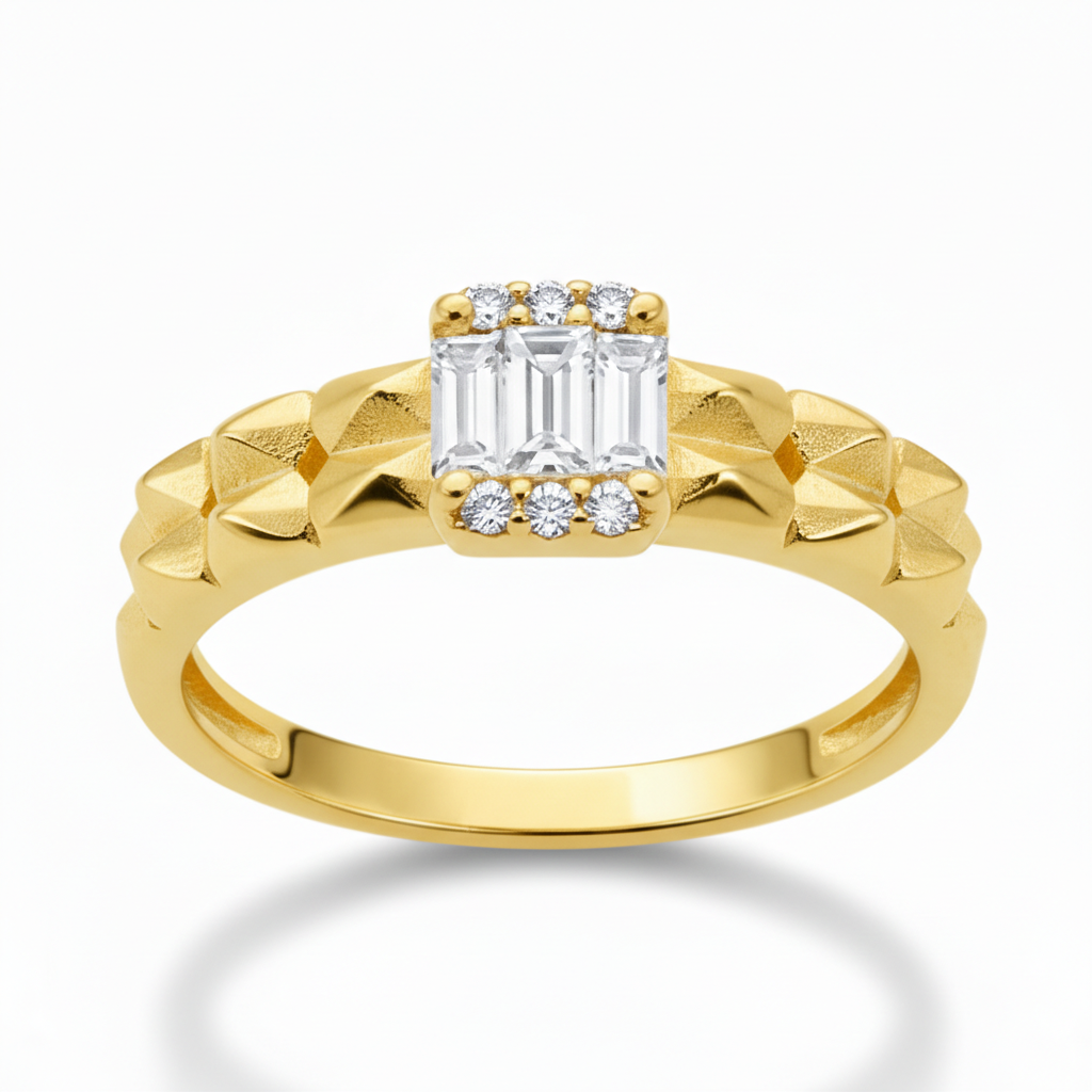 Beyaz Zirkon Taşlı Çark Tasarım Altın Renk Ayarlanabilir Ölçü 925 Ayar Gümüş Kadın Yüzük