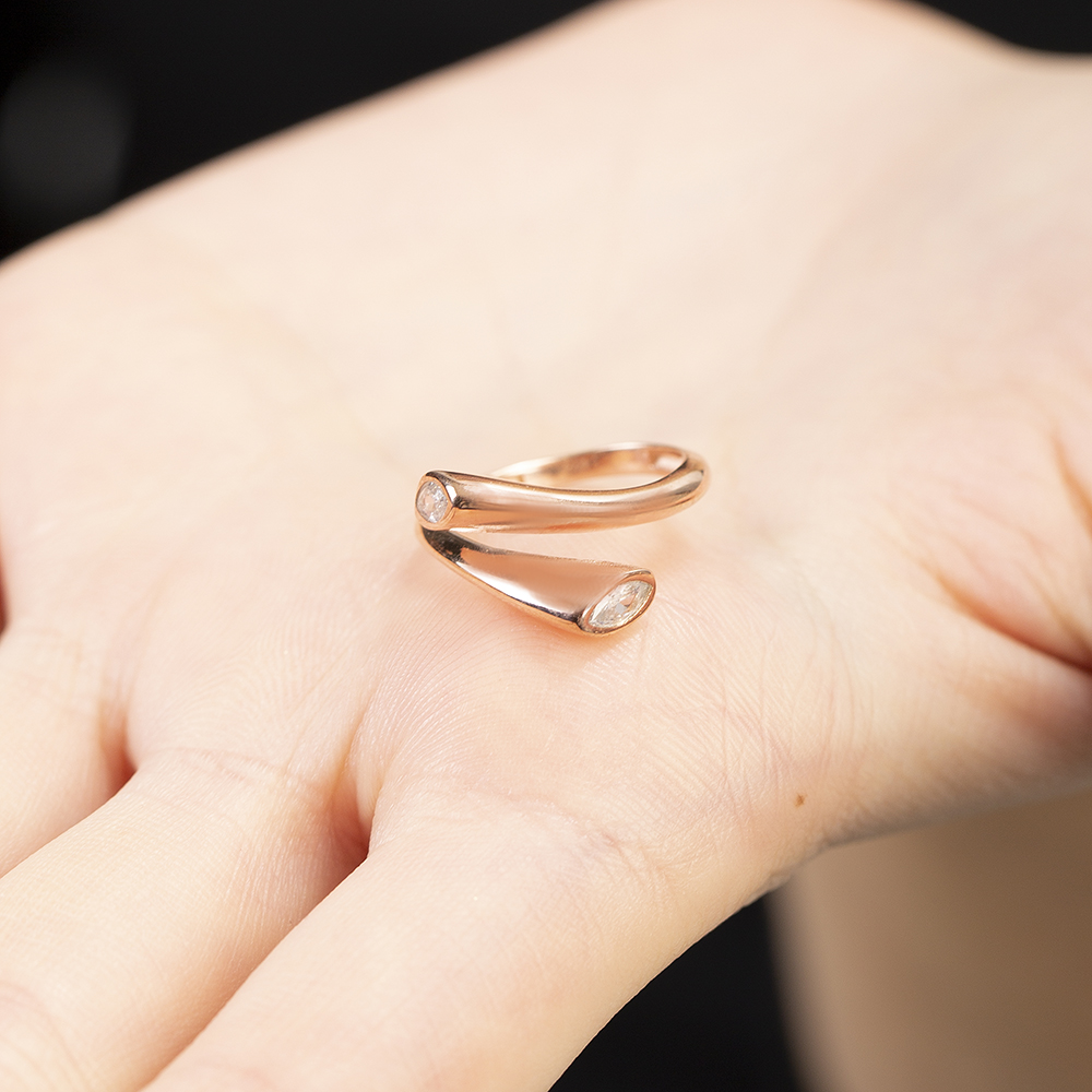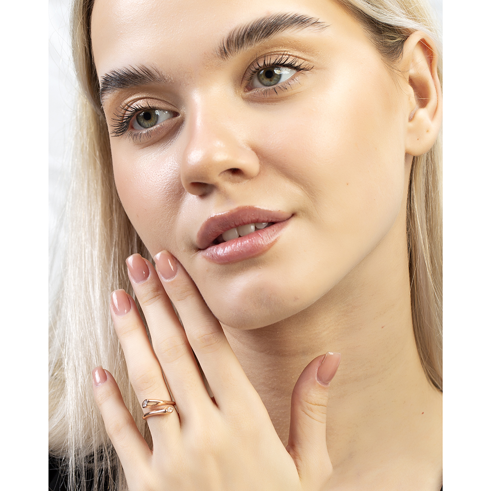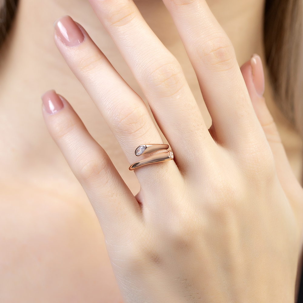 Beyaz Zirkon Taşlı Rose Renk Ayarlanabilir Ölçü 925 Ayar Gümüş Kadın Yüzük
