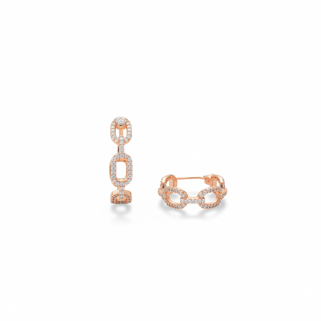 Beyaz Zirkon Taşlı Diamond Cut Tasarım Rose Renk 925 Ayar Gümüş Kadın Küpe