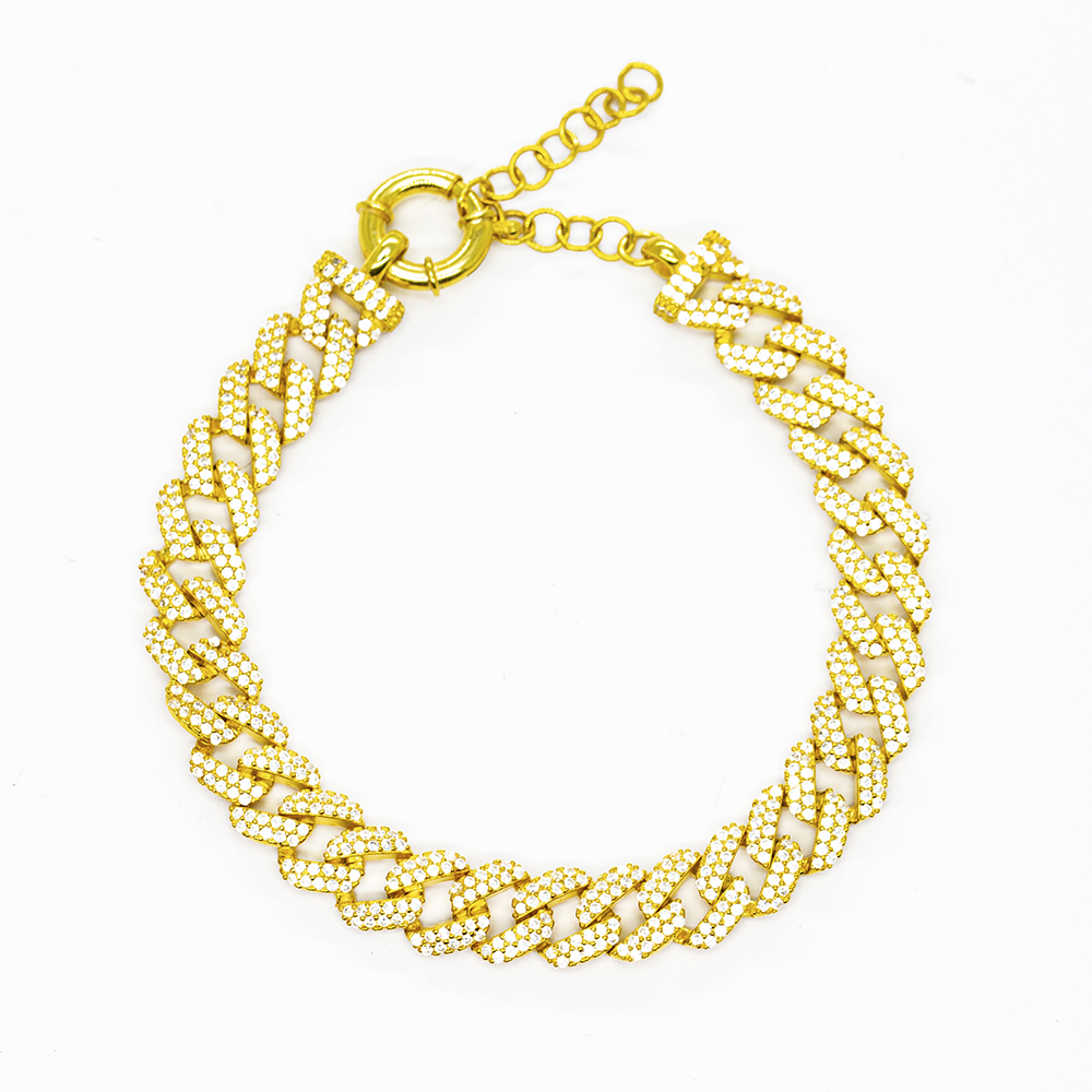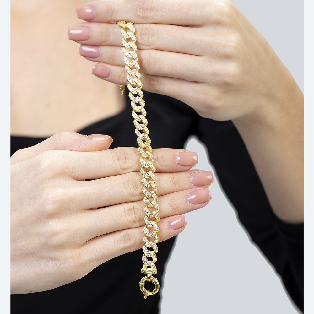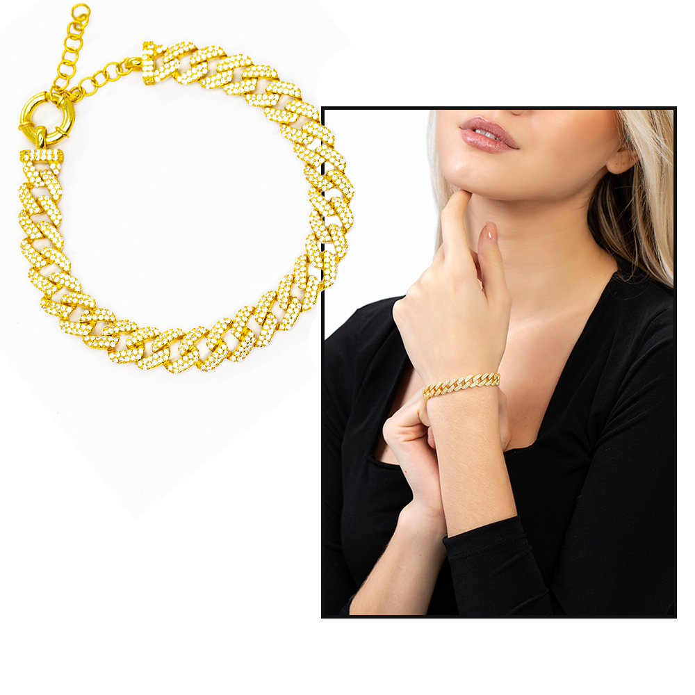 Beyaz Zirkon Taşlı Altın Renk 925 Ayar Gümüş Gurmet Kadın Bileklik