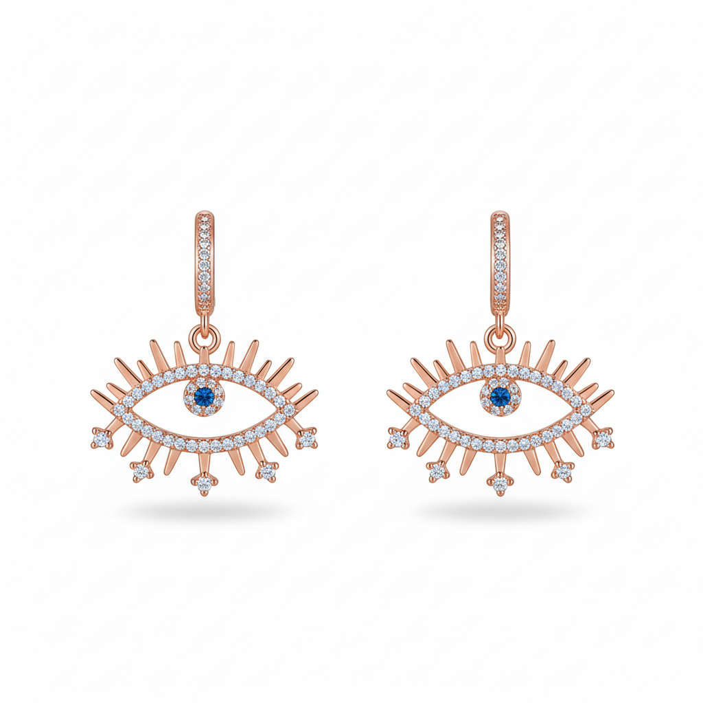 Beyaz Zirkon Taşlı Göz Tasarım Rose Renk 925 Ayar Gümüş Kadın Küpe