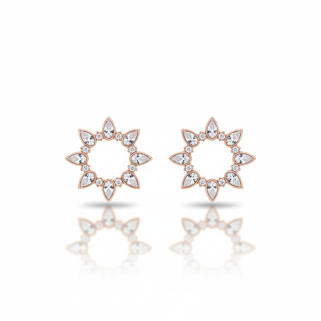 Beyaz Zirkon Taşlı Gözyaşı Tasarım Rose Renk 925 Ayar Gümüş Kadın Küpe