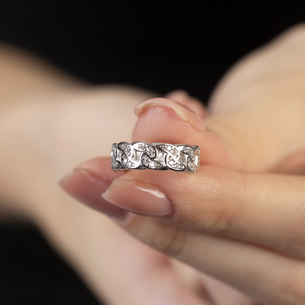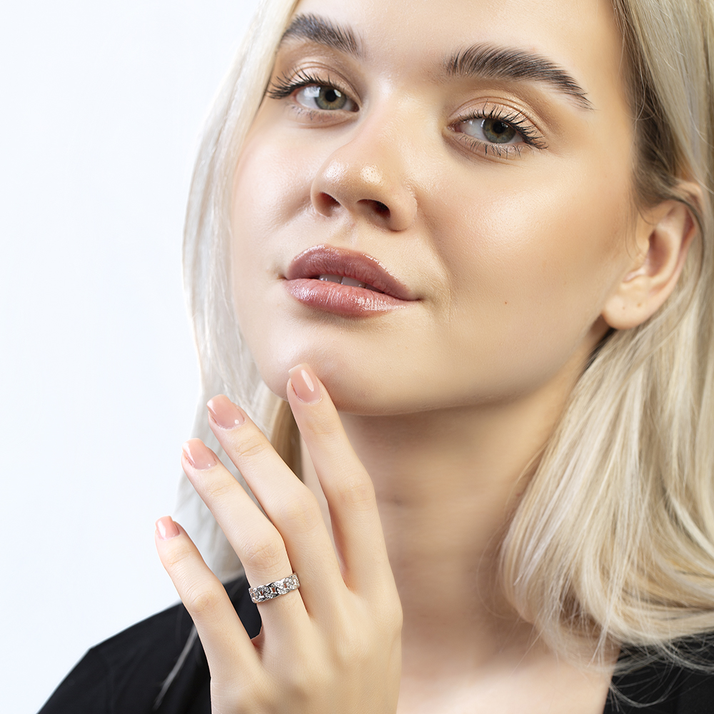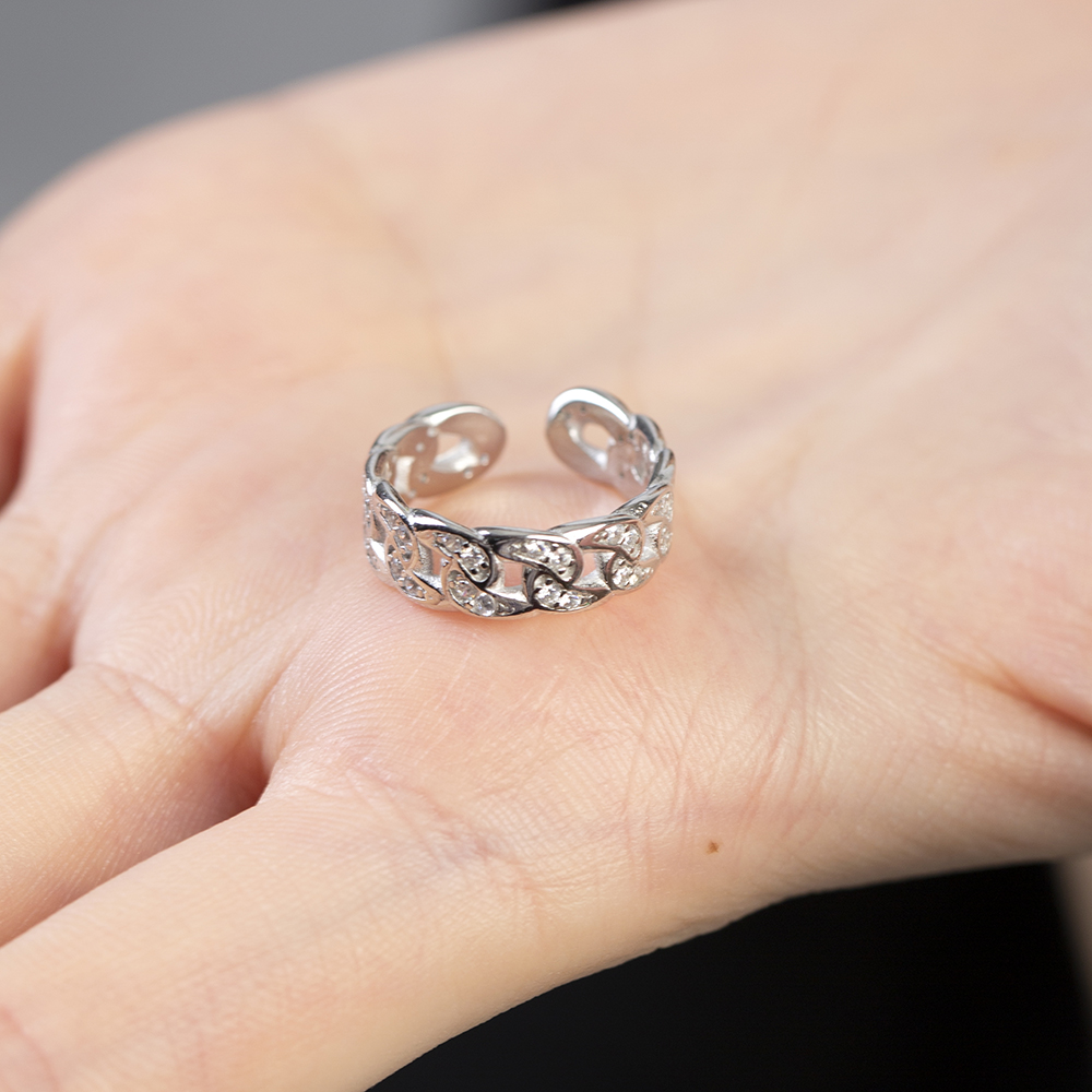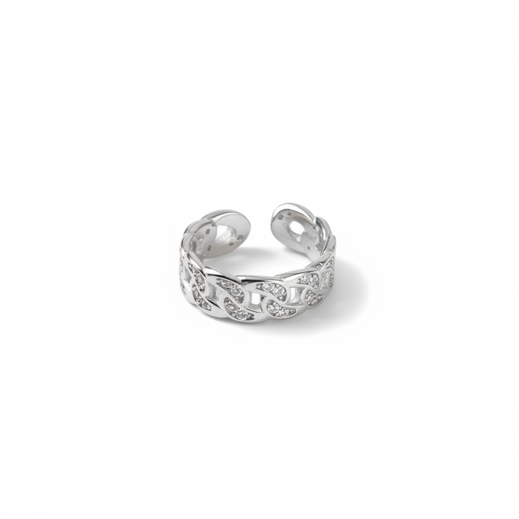 Beyaz Zirkon Taşlı Gurmet Tasarım Gümüş Renk Ayarlanabilir Ölçü 925 Ayar Gümüş Kadın Yüzük