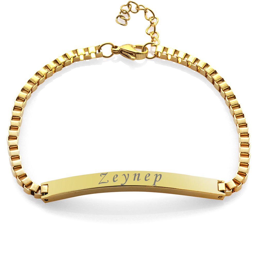 Altın Renk Kişiye Özel İsim Yazılı Çelik Kadın Box Zincir Bileklik