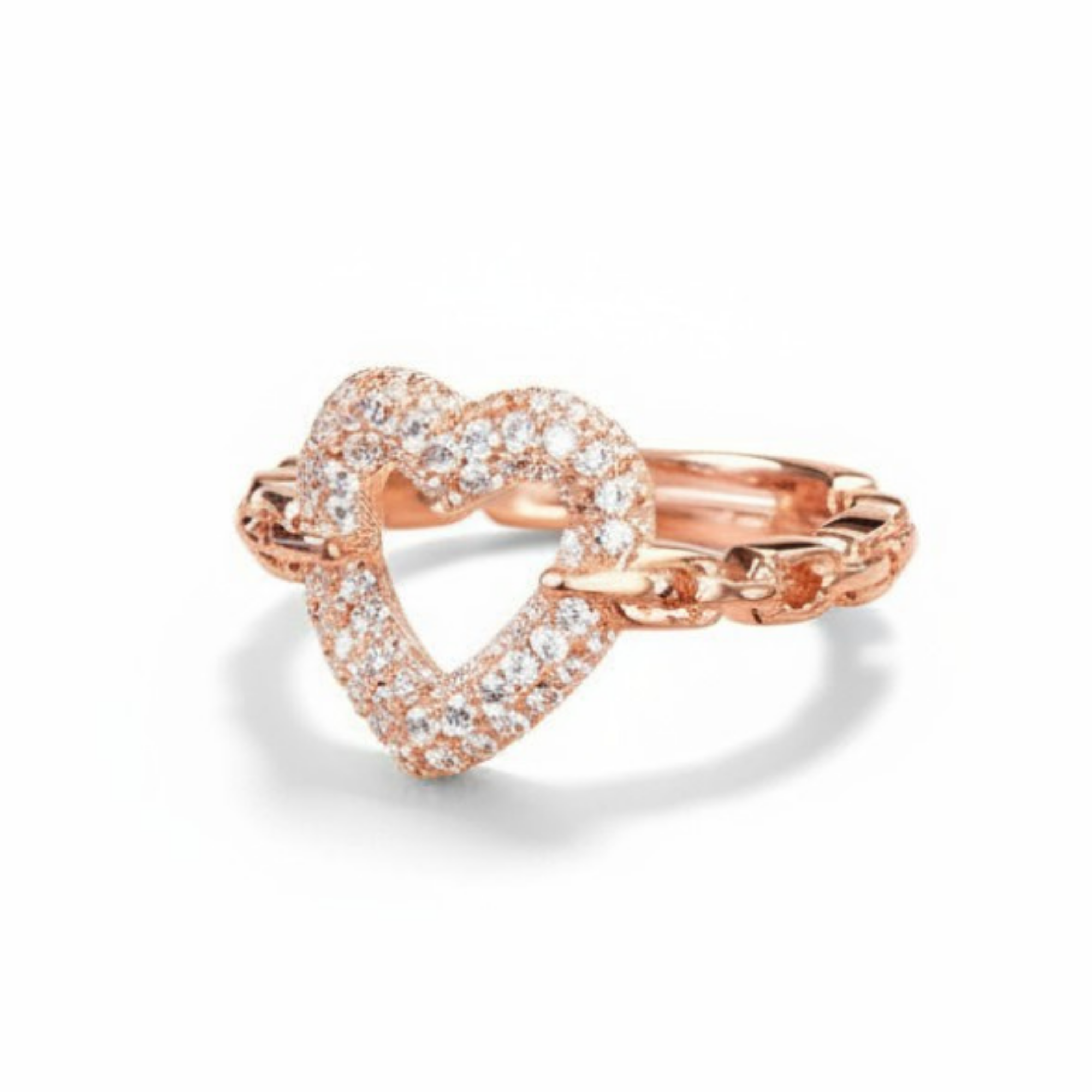 Beyaz Zirkon Taşlı Kalp Tasarım Rose Renk Ayarlanabilir Ölçü 925 Ayar Gümüş Kadın Yüzük