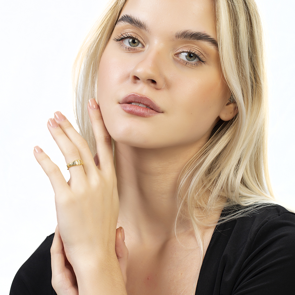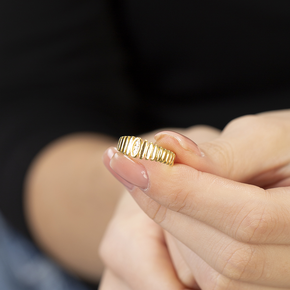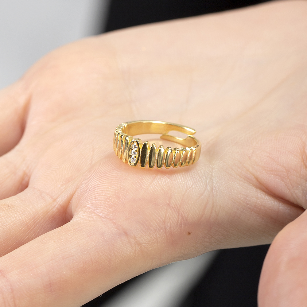 Beyaz Zirkon Taşlı Merdiven Tasarım Altın Renk Ayarlanabilir Ölçü 925 Ayar Gümüş Kadın Yüzük