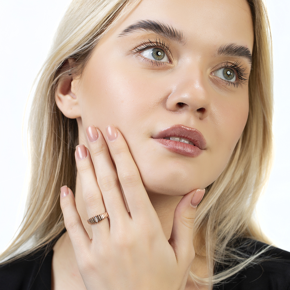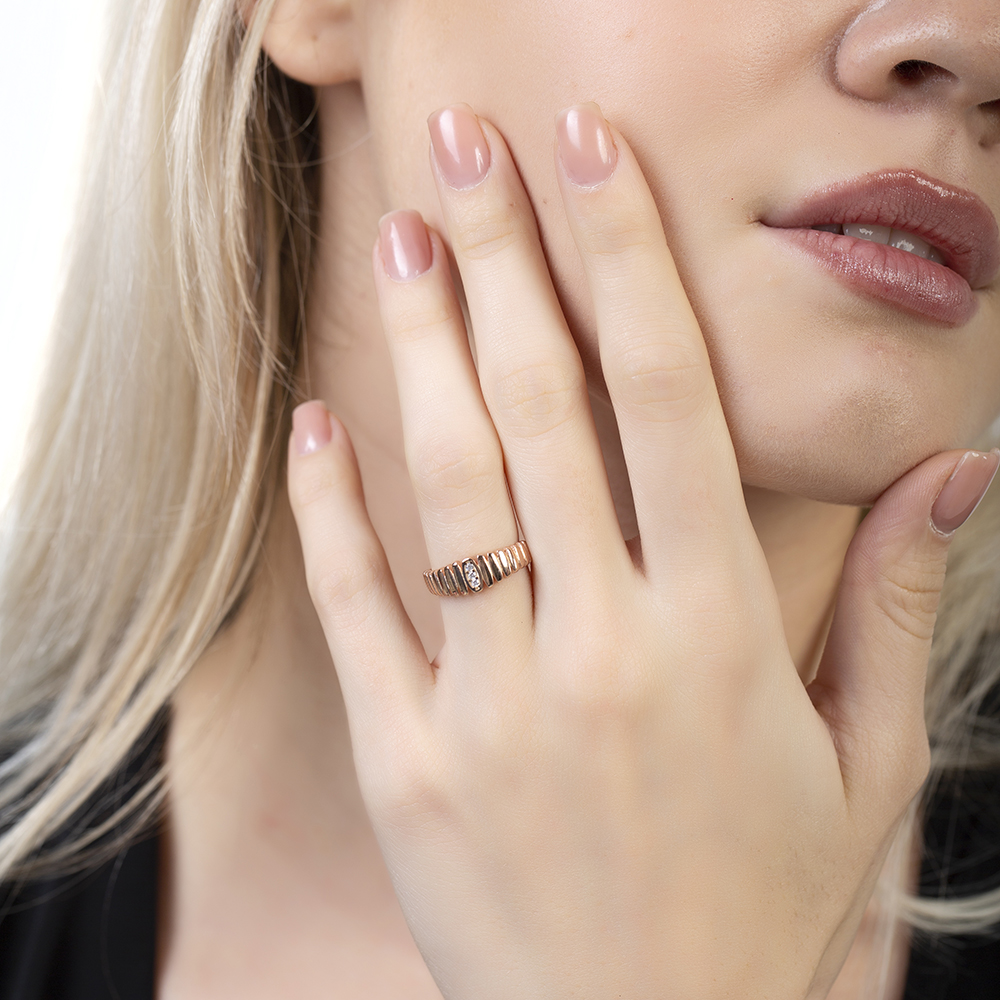 Beyaz Zirkon Taşlı Merdiven Tasarım Rose Renk Ayarlanabilir Ölçü 925 Ayar Gümüş Kadın Yüzük