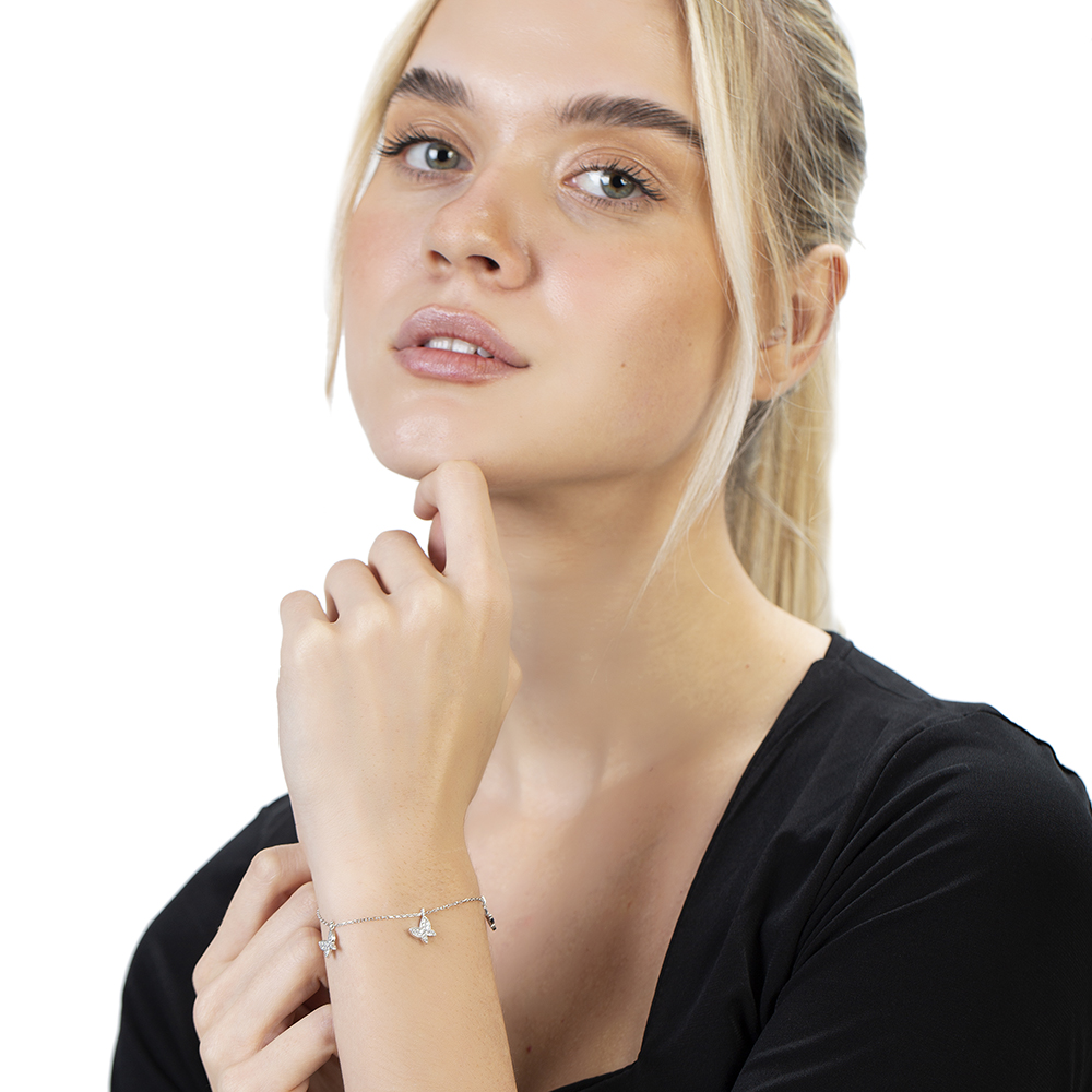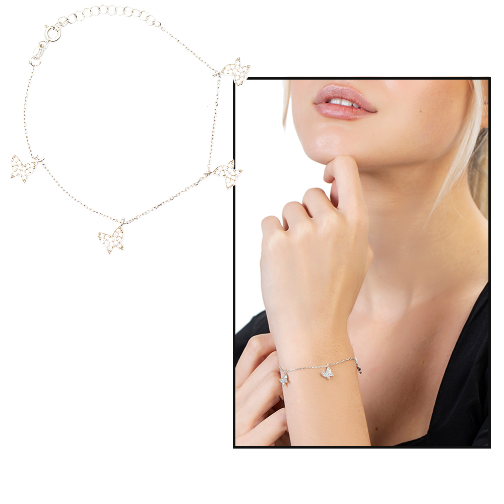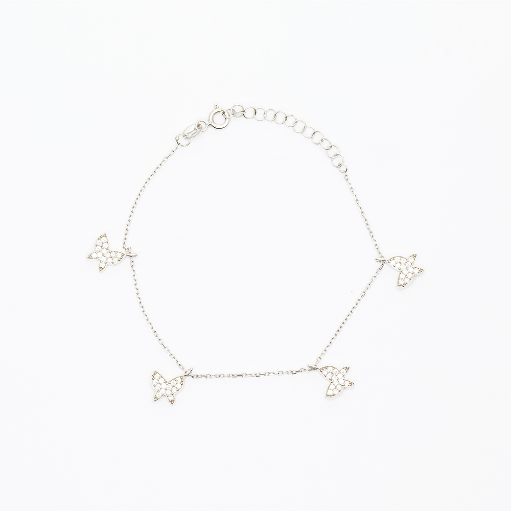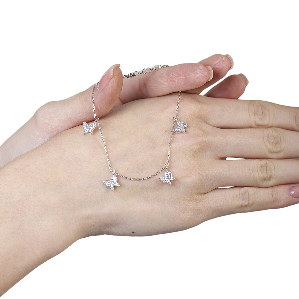 Beyaz Zirkon Taşlı Gümüş Renk Kelebek Tasarım 925 Ayar Gümüş Kadın Bileklik