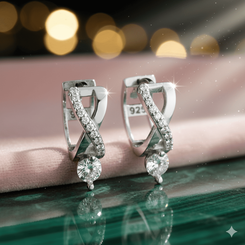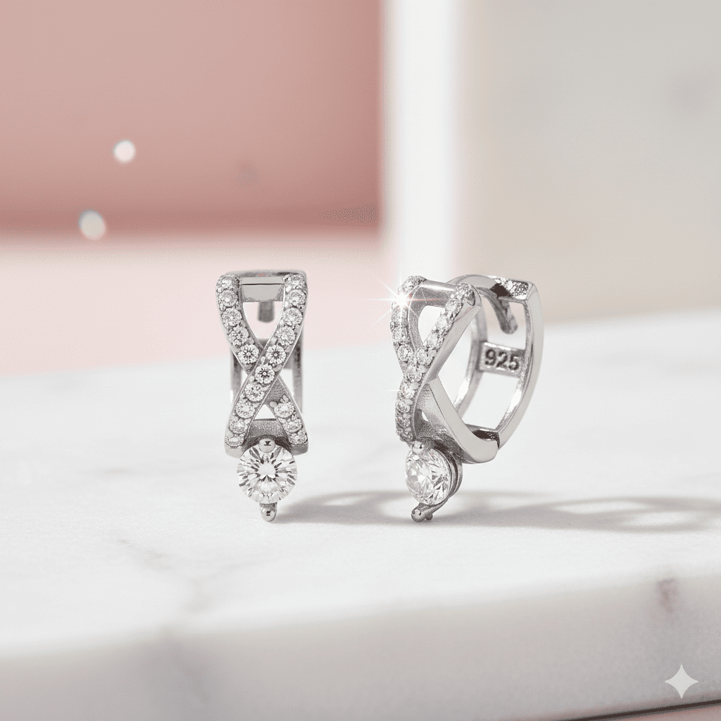 Beyaz Zirkon Taşlı Sonsuzluk Detaylı Gümüş Renk 925 Ayar Gümüş Tek Taş Kadın Küpe
