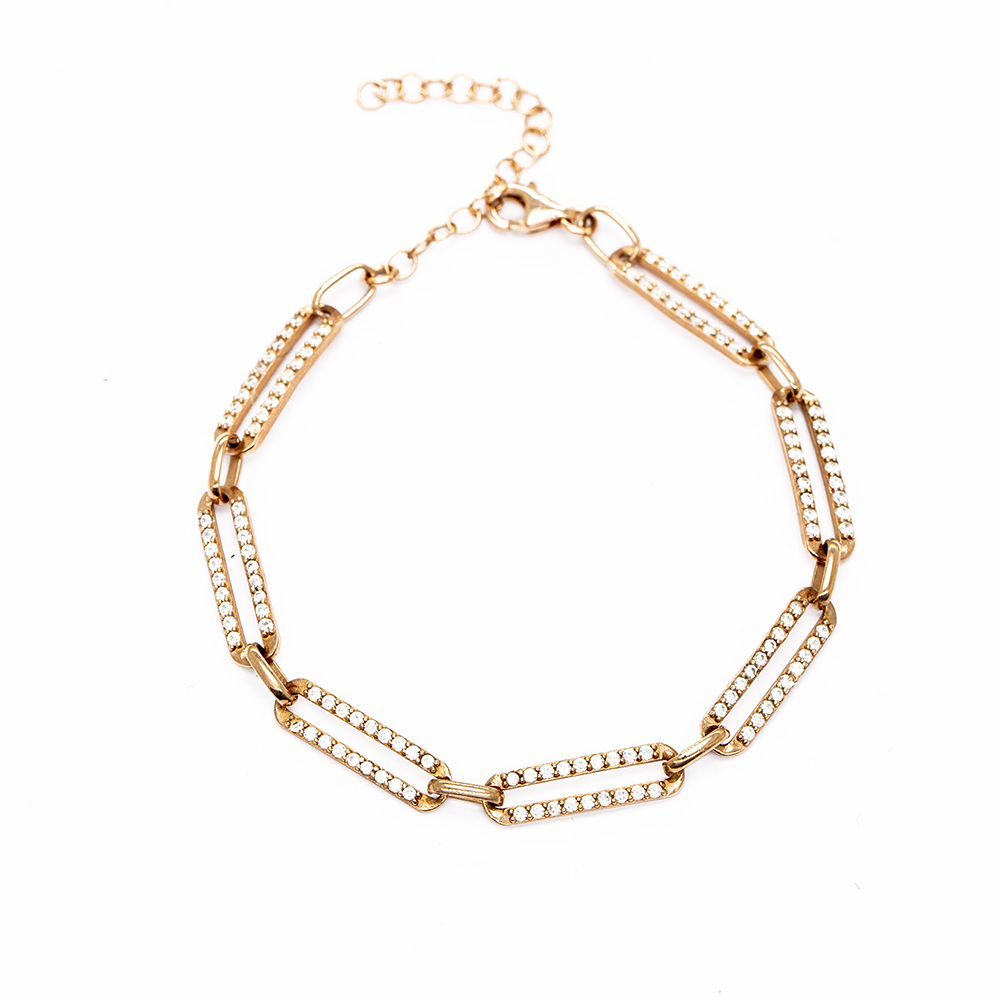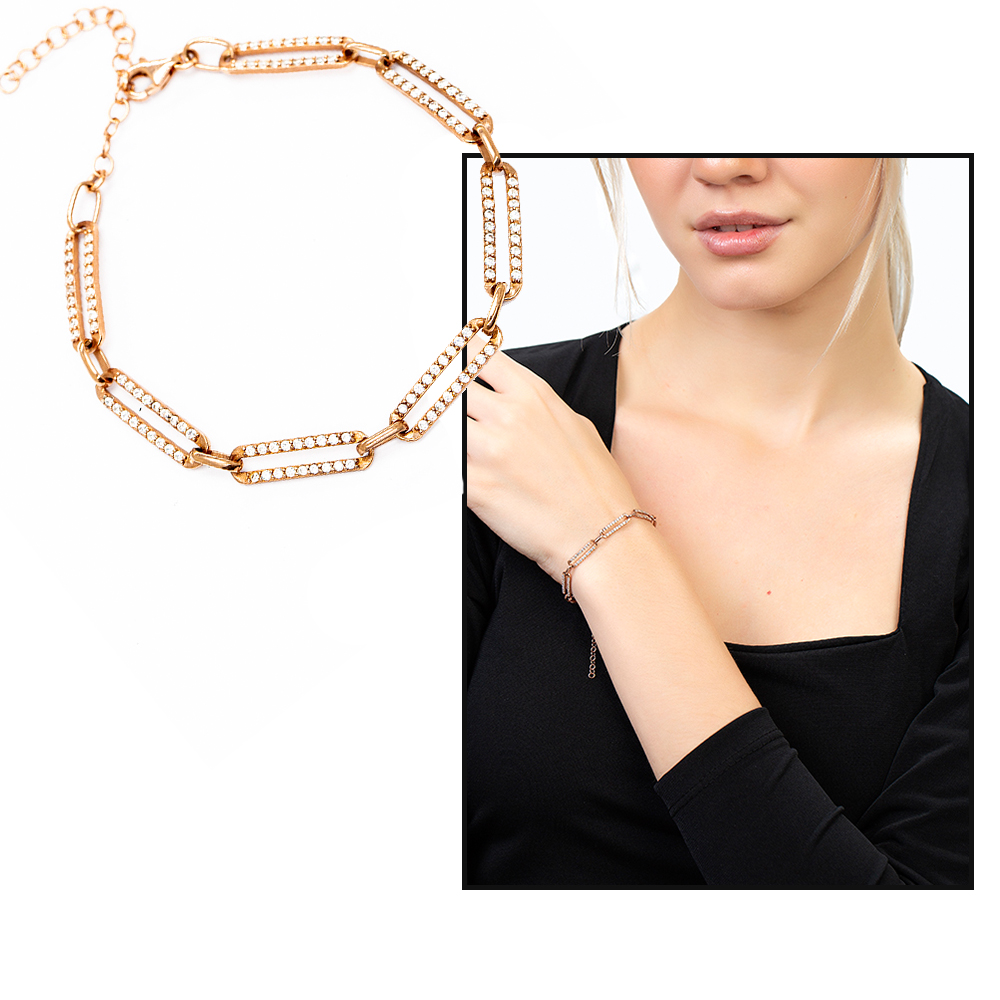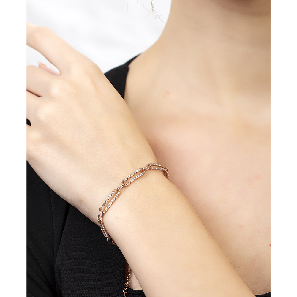 Beyaz Zirkon Taşlı Trend Tasarım Rose Renk 925 Ayar Gümüş Kadın Bileklik