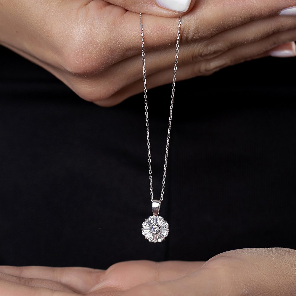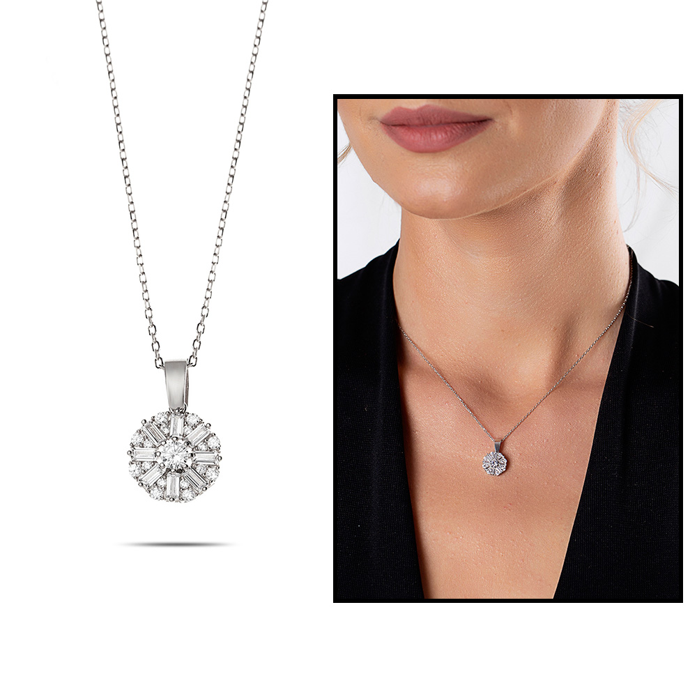 Beyaz Zirkon Taşlı Zarif Tasarım 925 Ayar Gümüş Trend Kolye