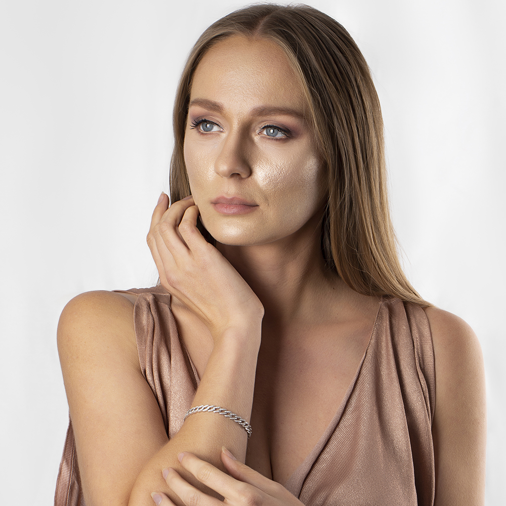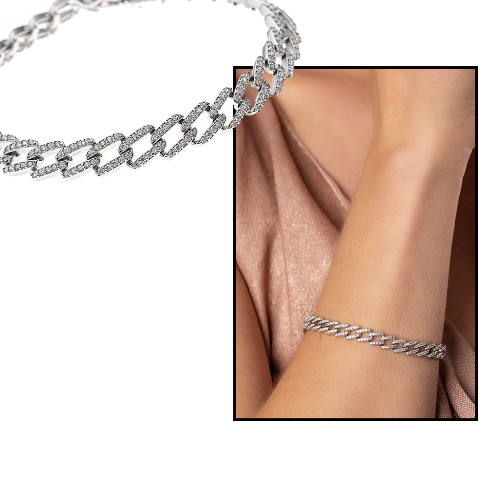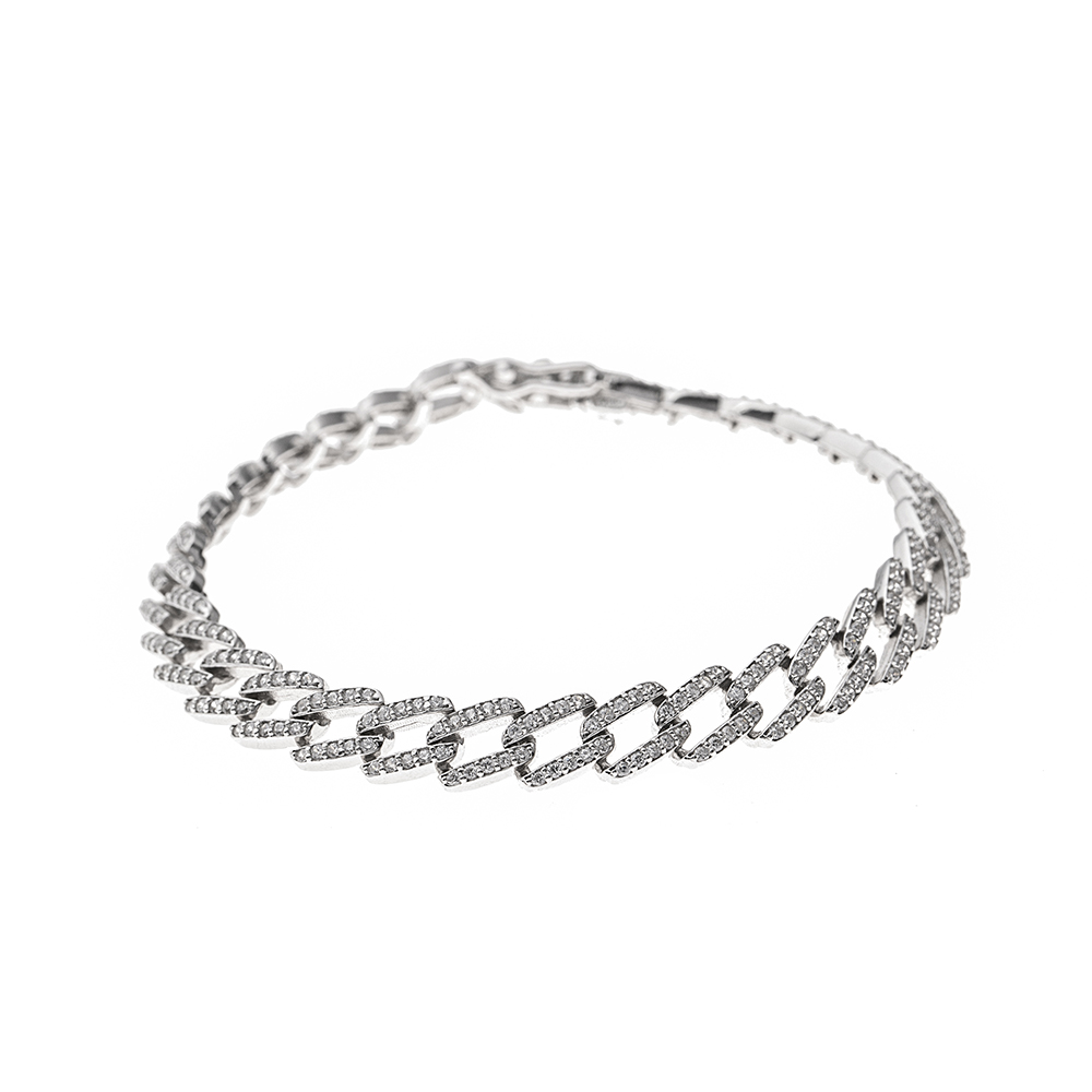 Beyaz Zirkon Taşlı Zincir Tasarım Tam Tur 925 Ayar Gümüş Kadın Bileklik