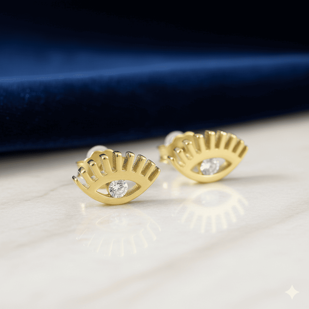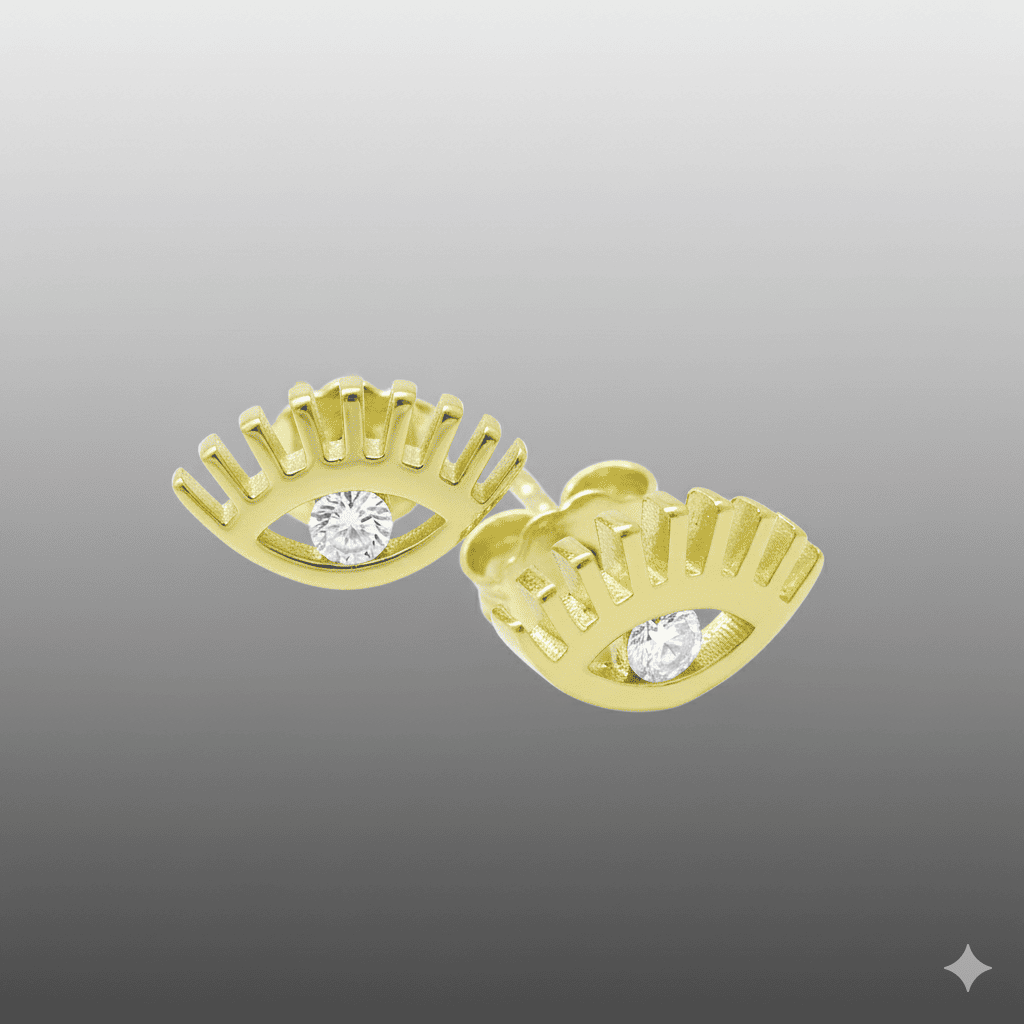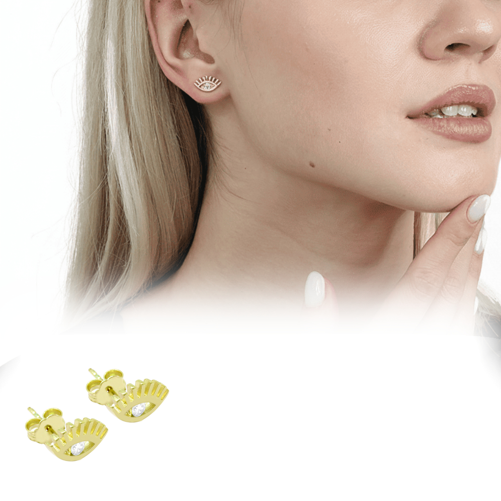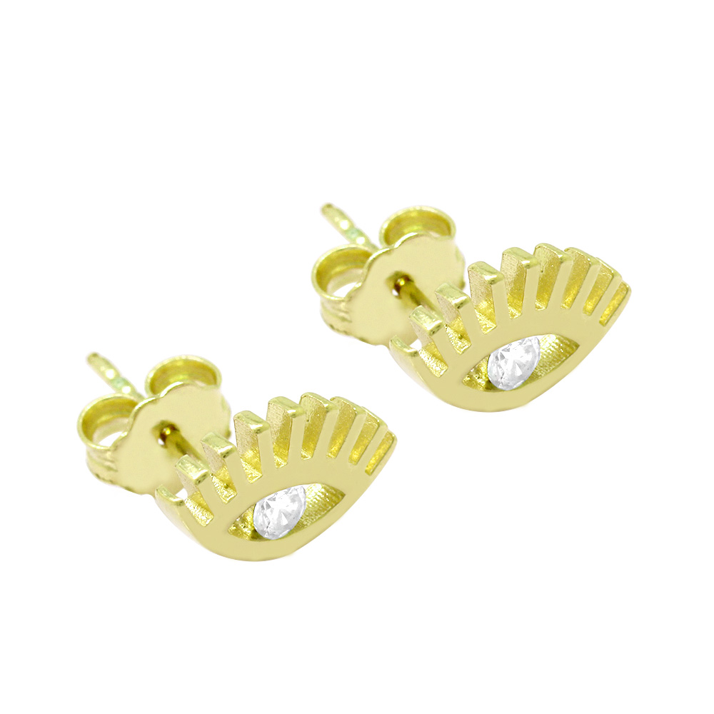 Beyaz Zirkon Tek Taşlı Göz Tasarım Altın Renk 925 Ayar Gümüş Kadın Küpe