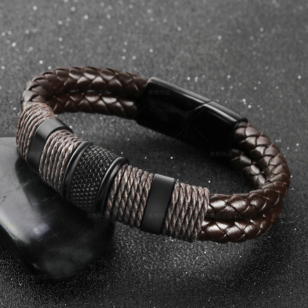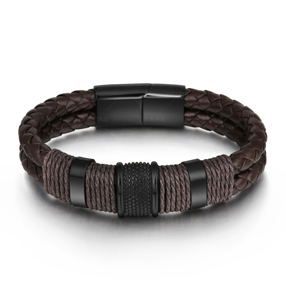 Çift Katmanlı Kahverengi Deri Halat ve 316L Kalite Çelik Bileşim Mekanizmalı Avangart Erkek Bileklik