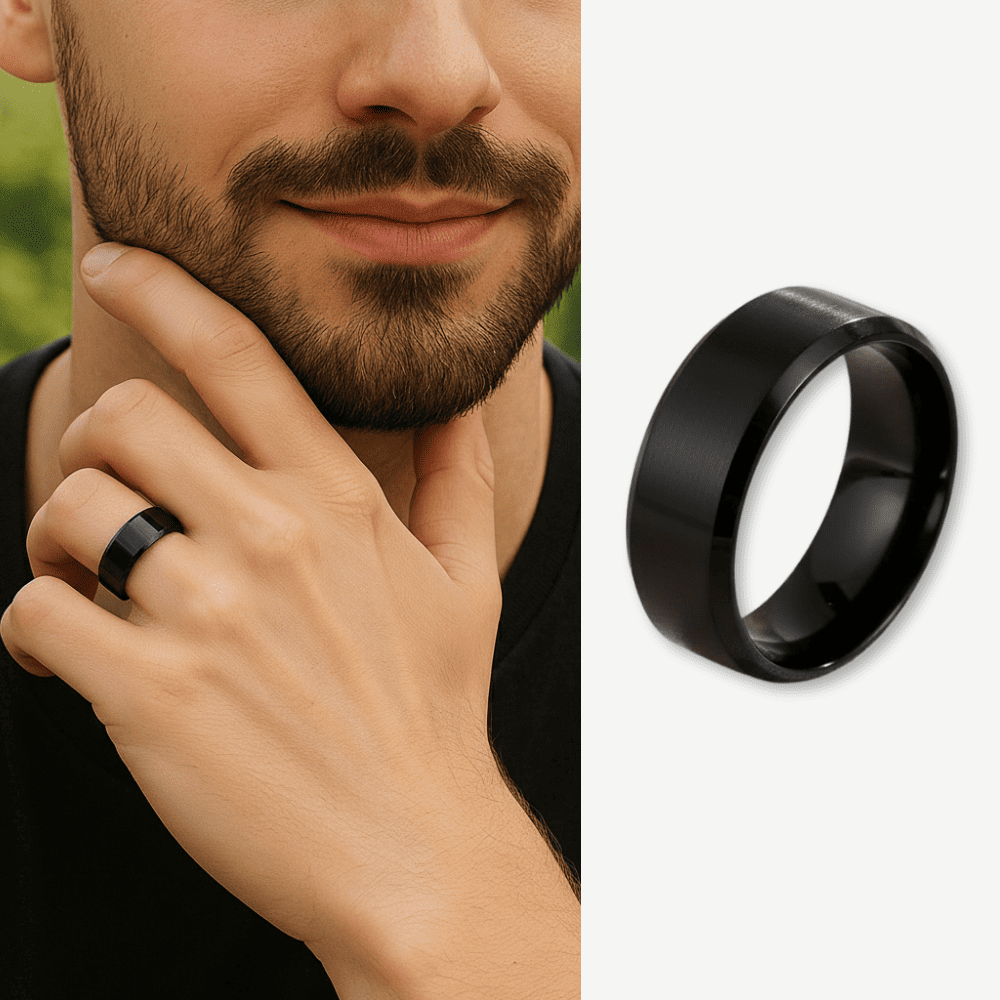 Siyah Renk 316L Kalite Paslanmaz Erkek Çelik Alyans Yüzük - 30 Ölçü