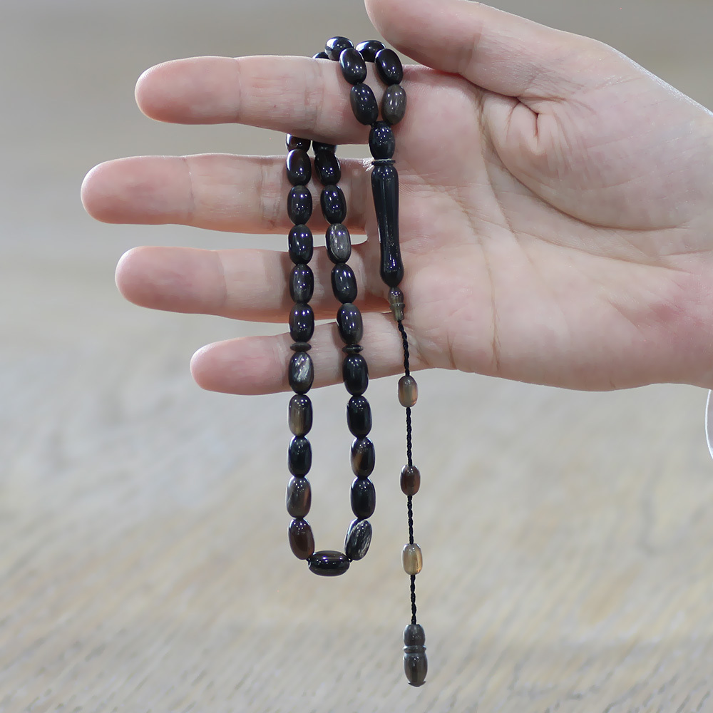 Doğal bufalo boynuzundan özenle işlenmiş tesbihlerimiz, hem şıklığı hem de dayanıklılığıyla öne çıkar. Hayat döngüsünün bir parçası olan bufalo boynuzlarını, size özel bir aksesuara dönüştürürken hiçbir canlıya zarar verilmemektedir.