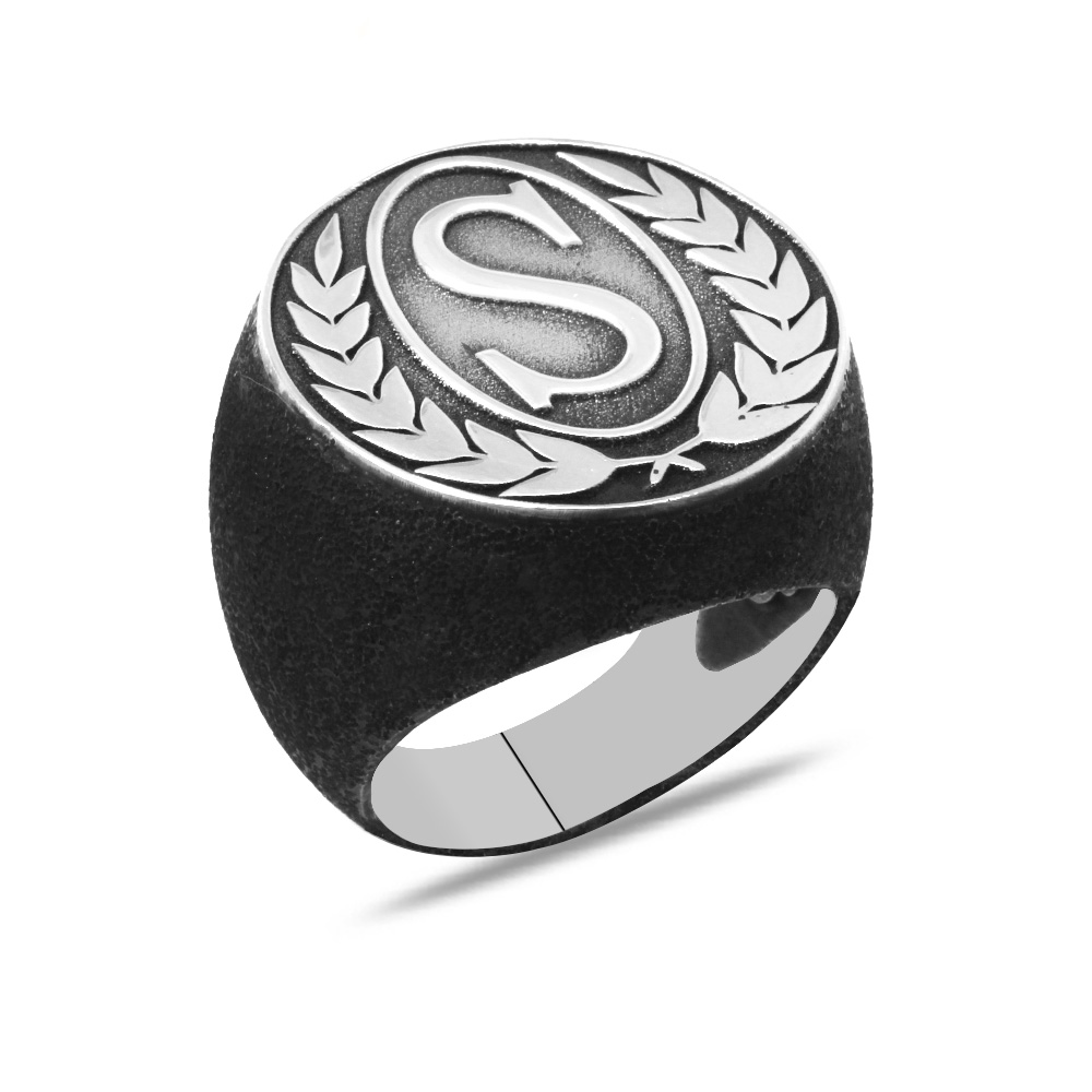 Buğday Detaylı İsme Özel Harf Yazılı 925 Ayar Gümüş Erkek Yüzük