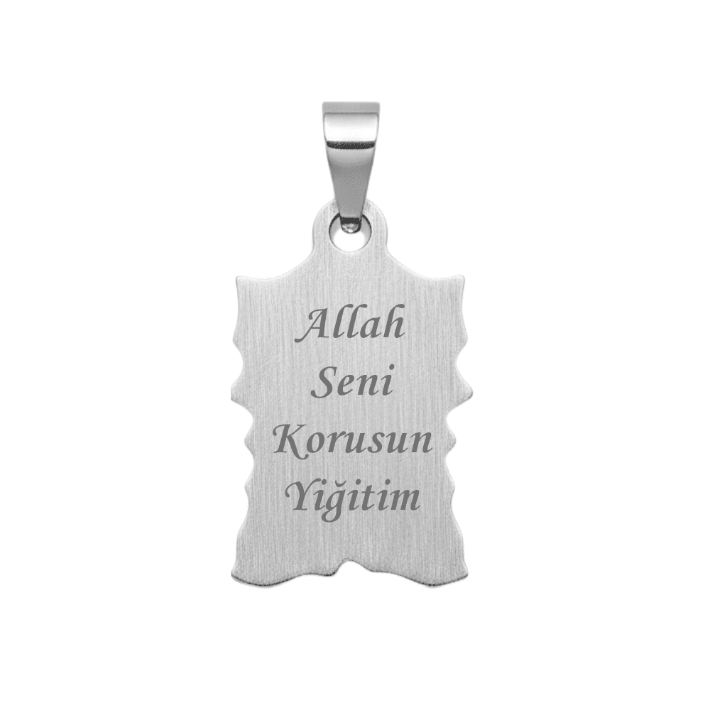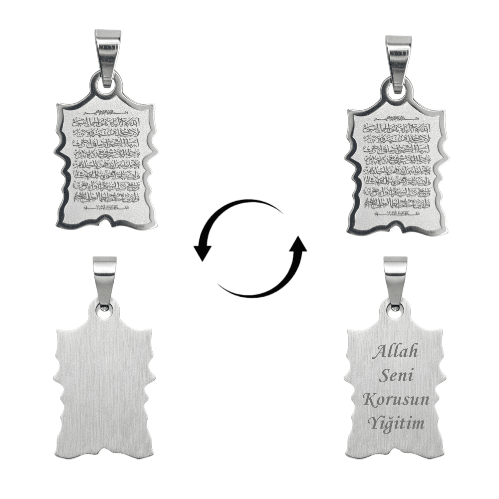 Çelik Püskül Ucu - Ayetel Kürsi Yazılı - Kişiye Özel - Gümüş Renk - Kitabe Tasarım