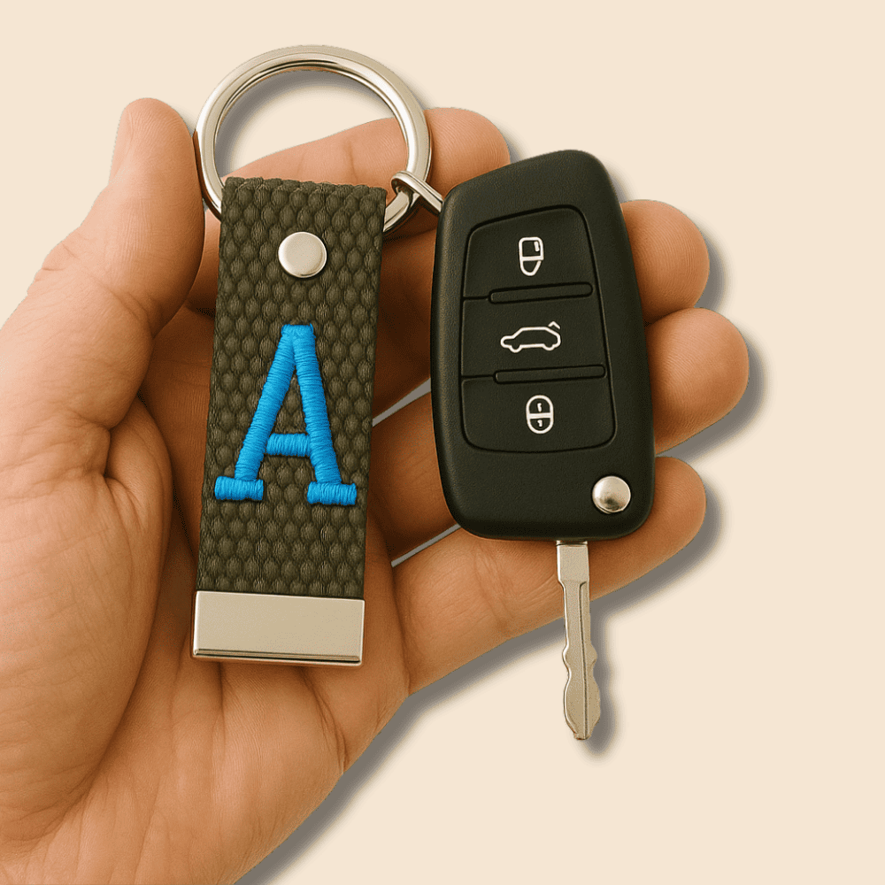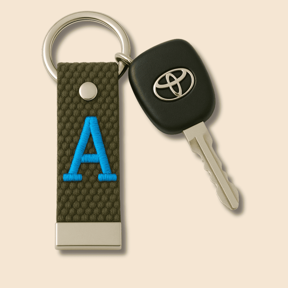 Şıklığı ve kişiselleştirilebilir tasarımı bir araya getiren bu özel anahtarlık, günlük kullanım için hem dayanıklı hem de estetik bir seçenektir. Dayanıklı dokulu haki renk kumaş üzerine istediğiniz harf ve sembollerin nakışla işlenmesi, ürünü tamamen size özel hale getirir. Paslanmaz çelik tokası sayesinde uzun ömürlü ve güvenli kullanım sunar.