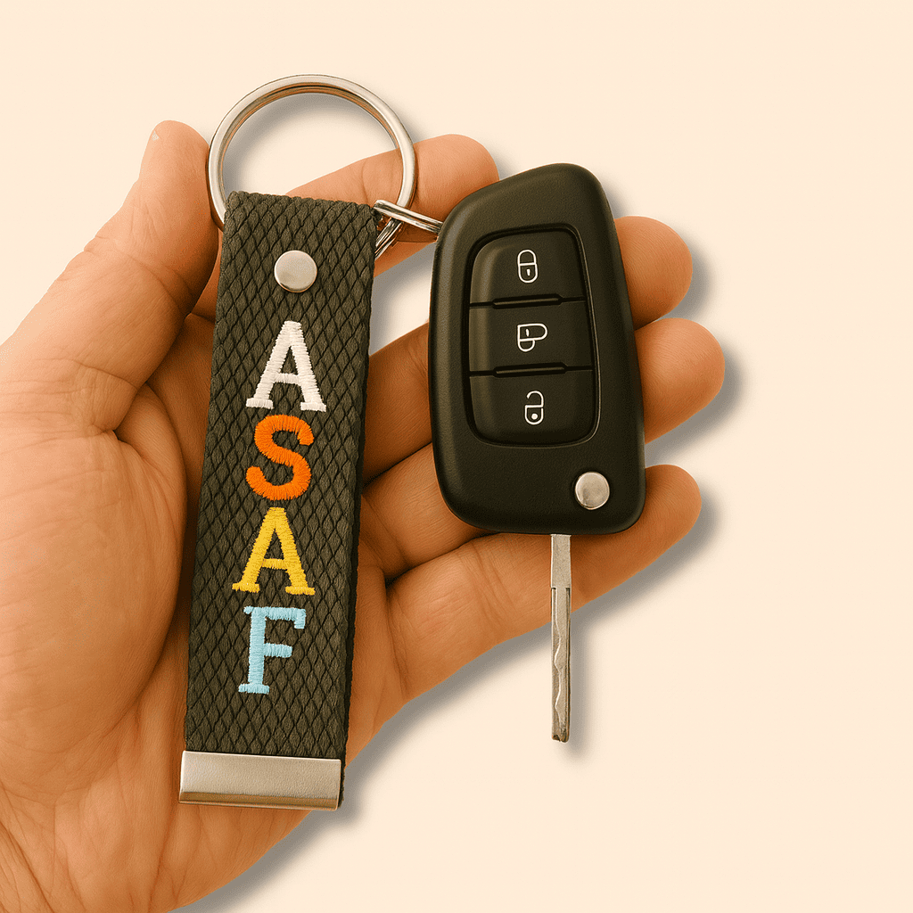 Şıklığı ve kişiselleştirilebilir tasarımı bir araya getiren bu özel anahtarlık, sevdiklerinize anlamlı bir hediye ya da kendinize özel bir aksesuar seçeneği sunar. Dayanıklı kumaş üzerine dilediğiniz isim ve sembollerin nakışla işlenmesi, ürünü tamamen size özel hale getirir. Paslanmaz çelik tokası sayesinde uzun ömürlü ve güvenli kullanım sağlar.