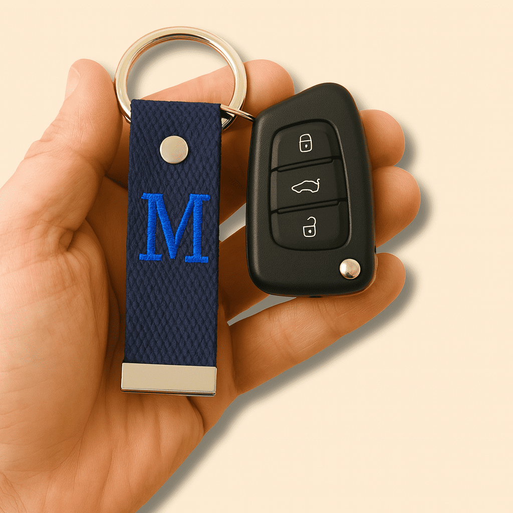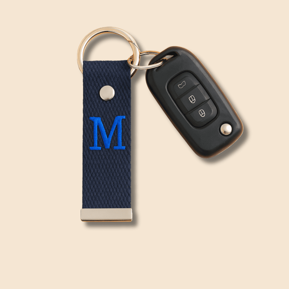 Çelik Tokalı - Kişiye Özel Anahtarlık - Lacivert - Dayanıklı Kumaş Üzerine Harf - Sembol Nakışlı