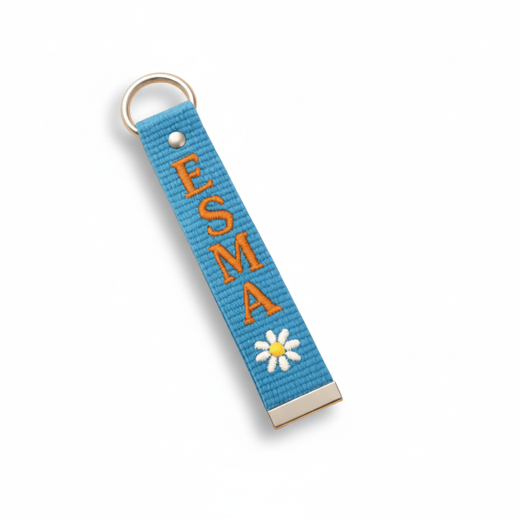 Şıklığı ve kişiselleştirilebilir tasarımı bir araya getiren bu özel anahtarlık, sevdiklerinize anlamlı bir hediye ya da kendinize özel bir aksesuar seçeneği sunar. Dayanıklı kumaş üzerine dilediğiniz isim ve sembollerin nakışla işlenmesi, ürünü tamamen size özel hale getirir. Paslanmaz çelik tokası sayesinde uzun ömürlü ve güvenli kullanım sağlar.