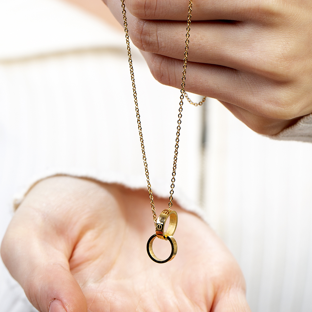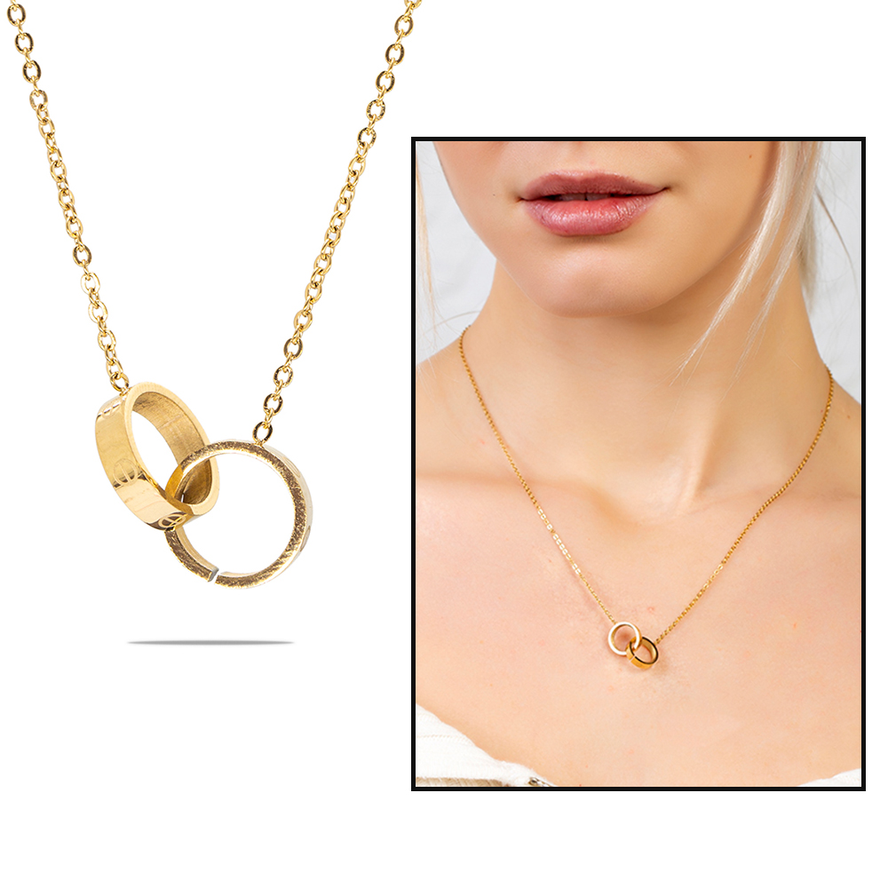 Çift Alyans Tasarım Altın Renk Çelik Kadın Kolye - 1