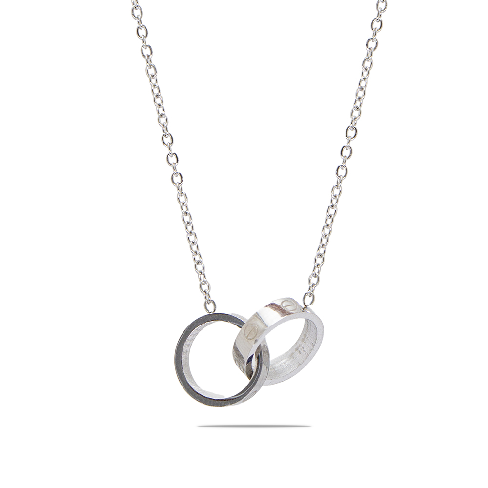 Çift Alyans Tasarım Gümüş Renk Çelik Kadın Kolye