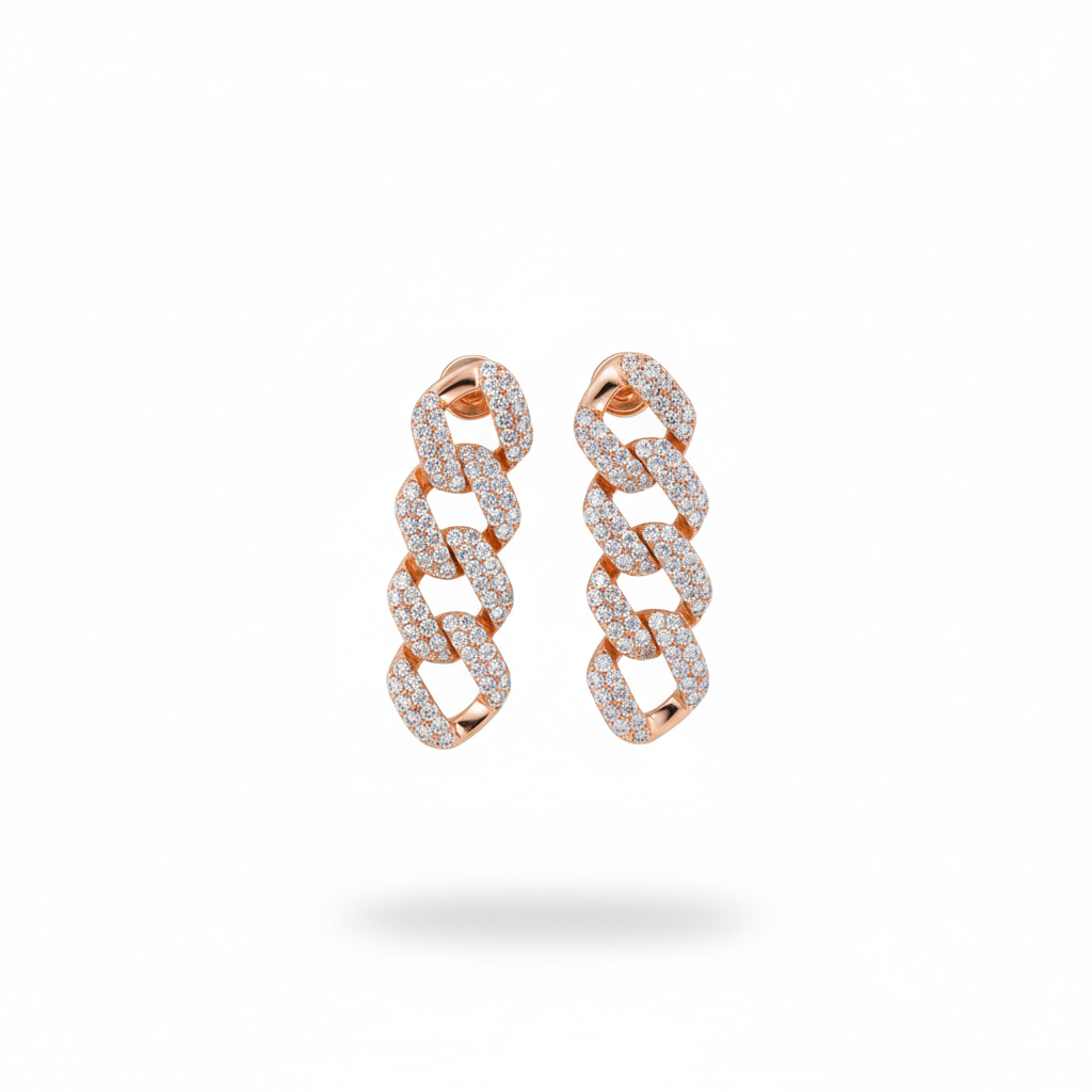 Çift Sıra Beyaz Zirkon Taşlı Rose Renk 925 Ayar Gümüş Gurmet Kadın Küpe
