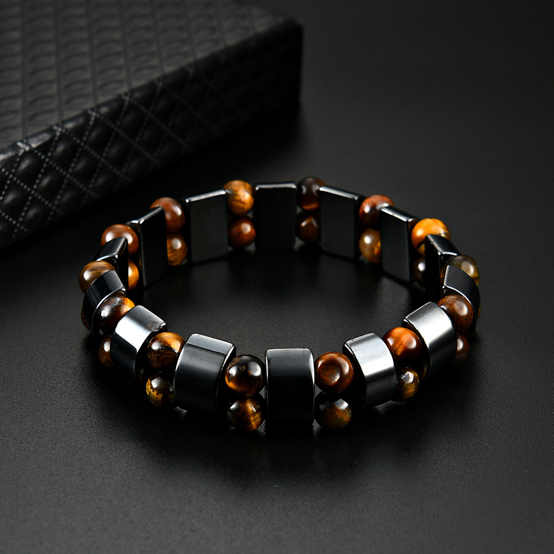 Çift Sıra Kaplan Gözü ve Hematit Bileşim Doğaltaş Kadın Bileklik