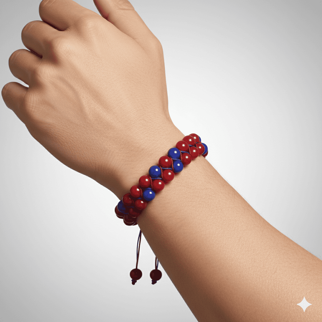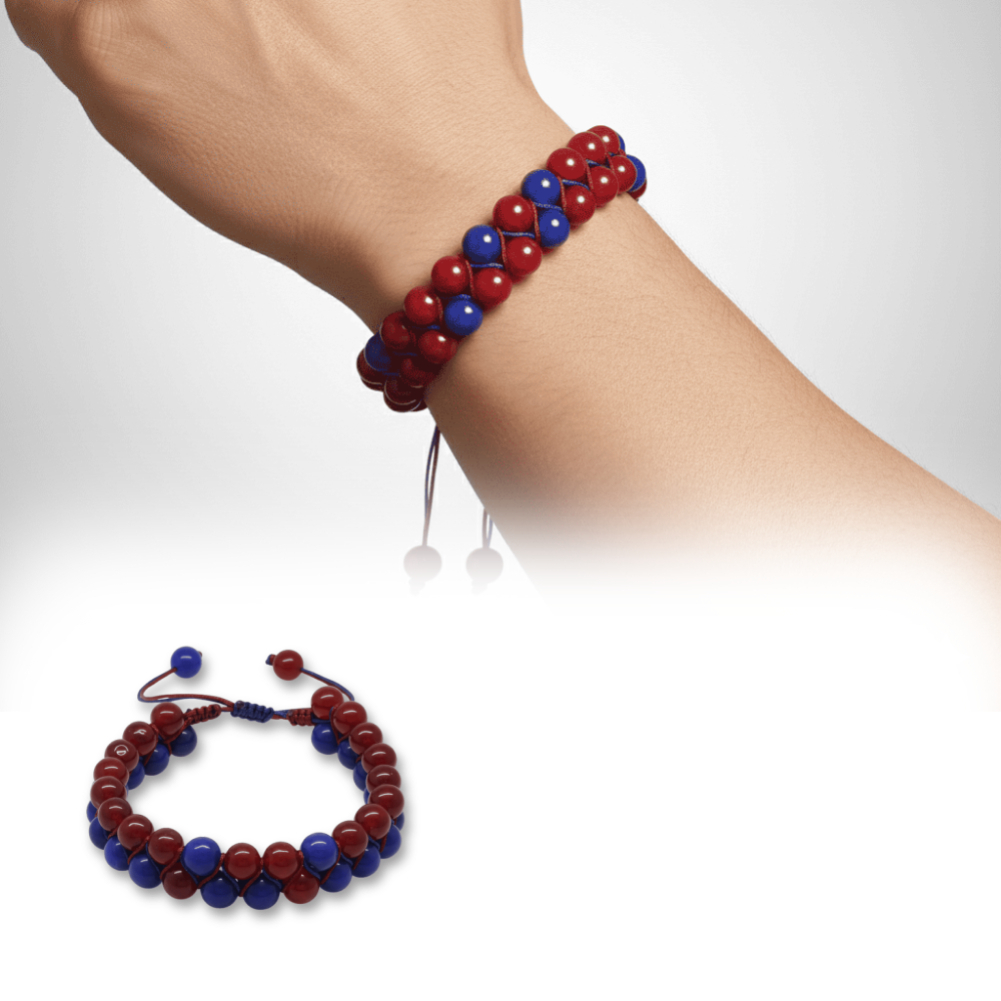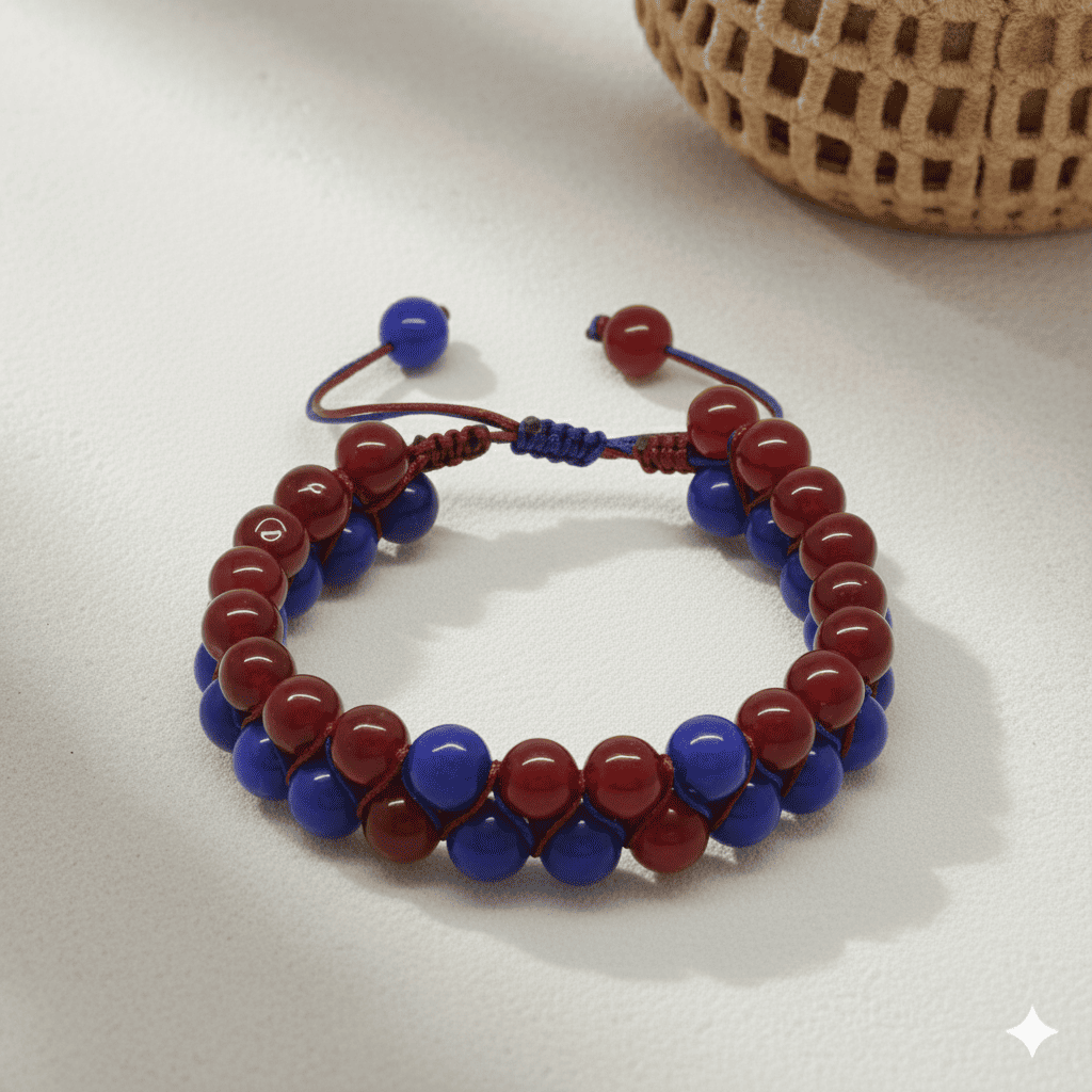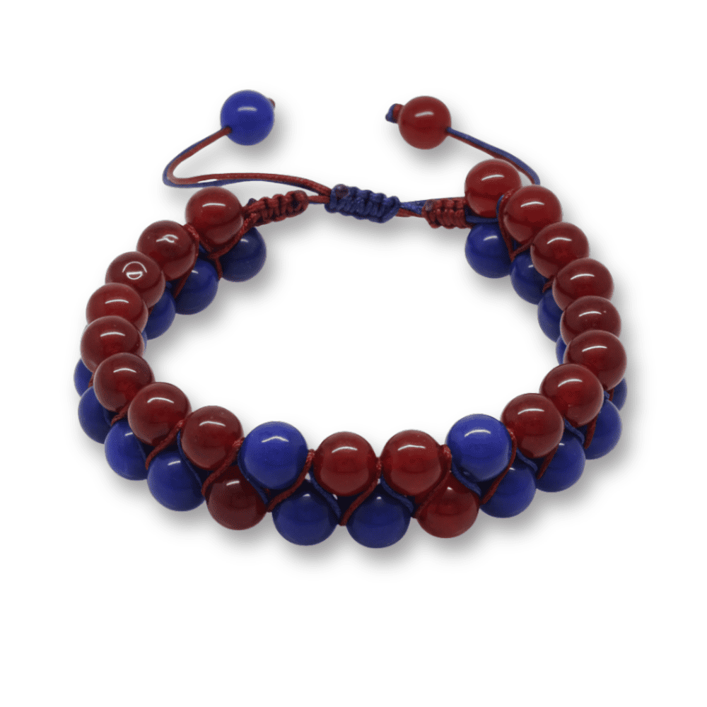 Çift Sıra Makrome Örgülü Küre Kesim Bordo Mavi Jade Doğaltaş Erkek Taraftar Bileklik