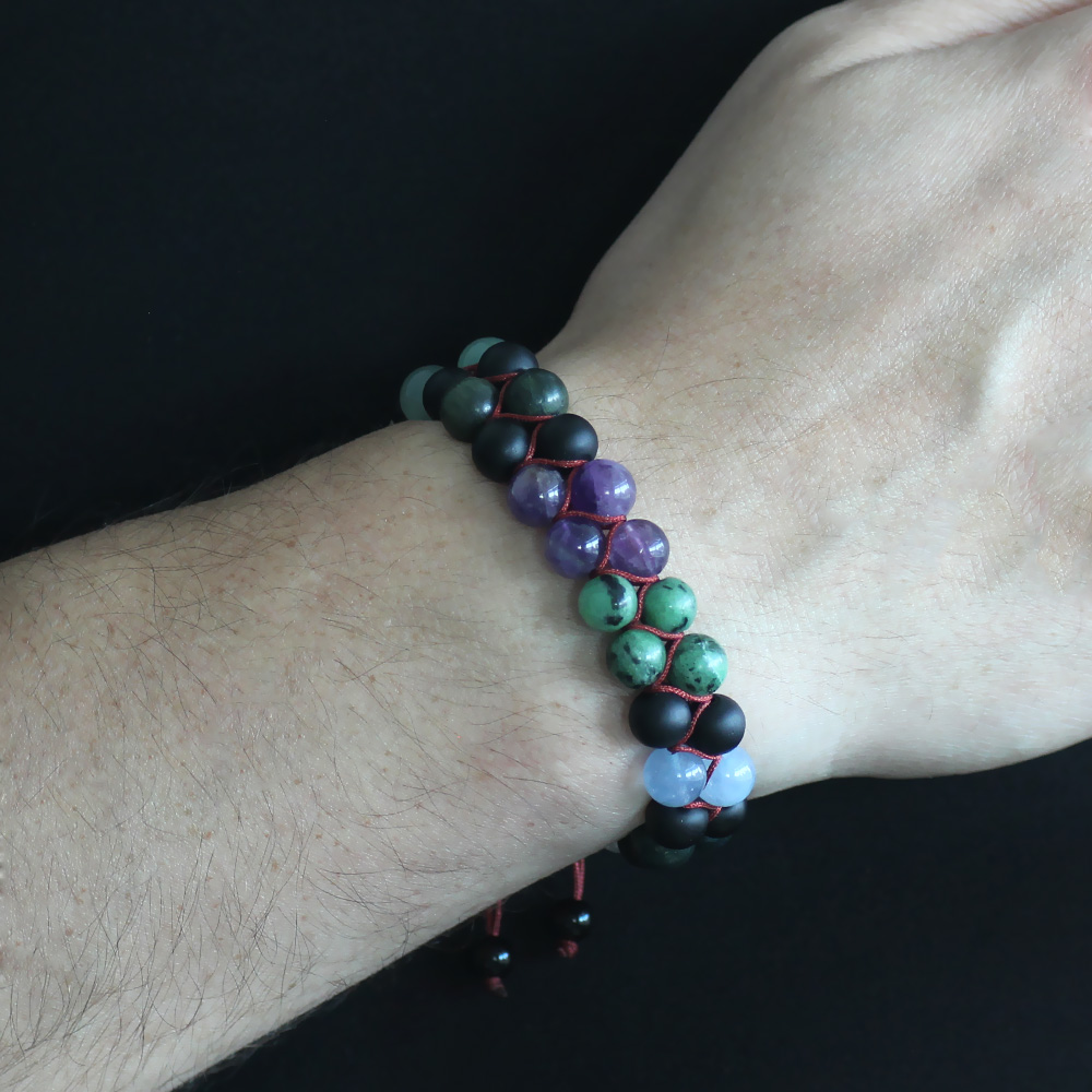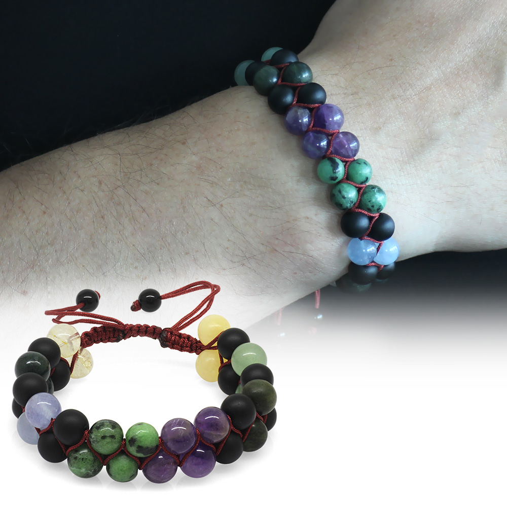 Çift Sıra Makrome Örgülü Küre Kesim Çoklu Doğaltaş Kombinli Erkek Şifa Bilekliği