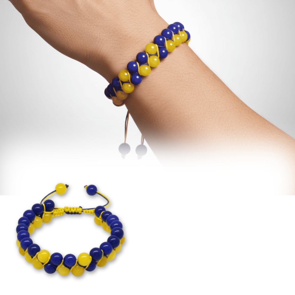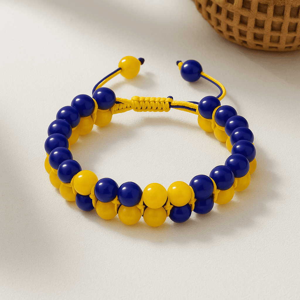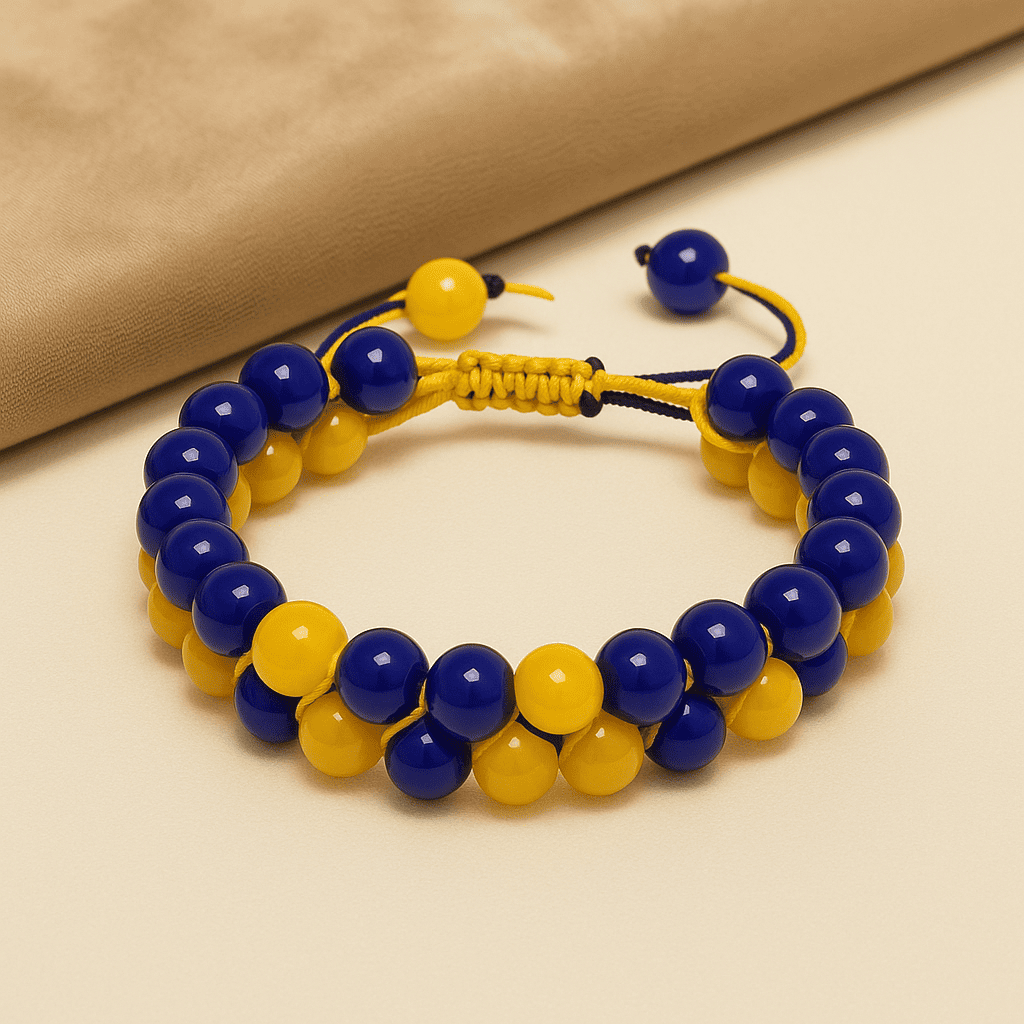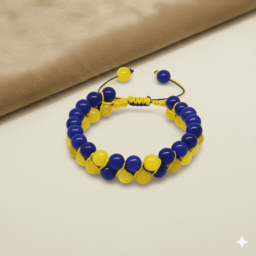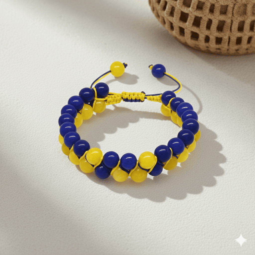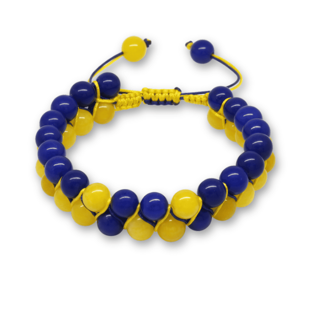Çift Sıra Makrome Örgülü Küre Kesim Sarı Lacivert Jade Doğaltaş Erkek Taraftar Bileklik
