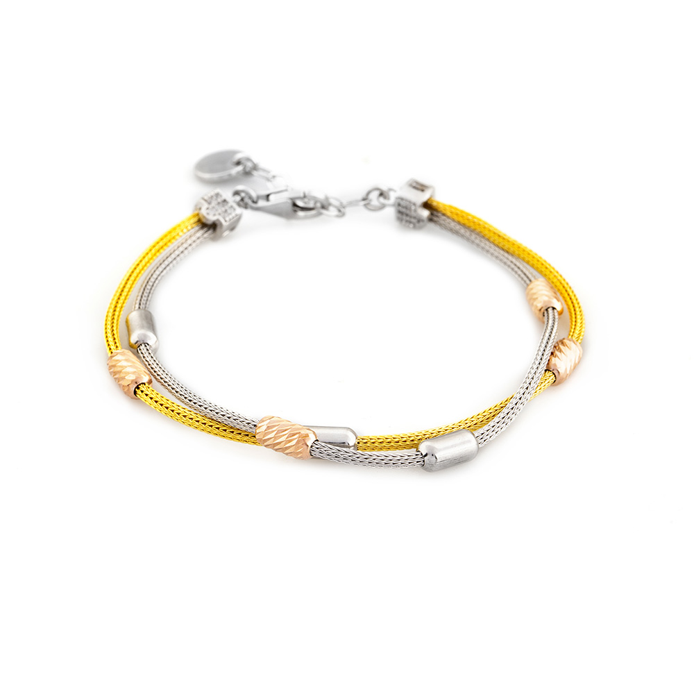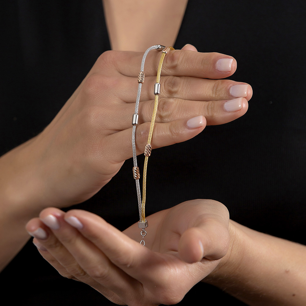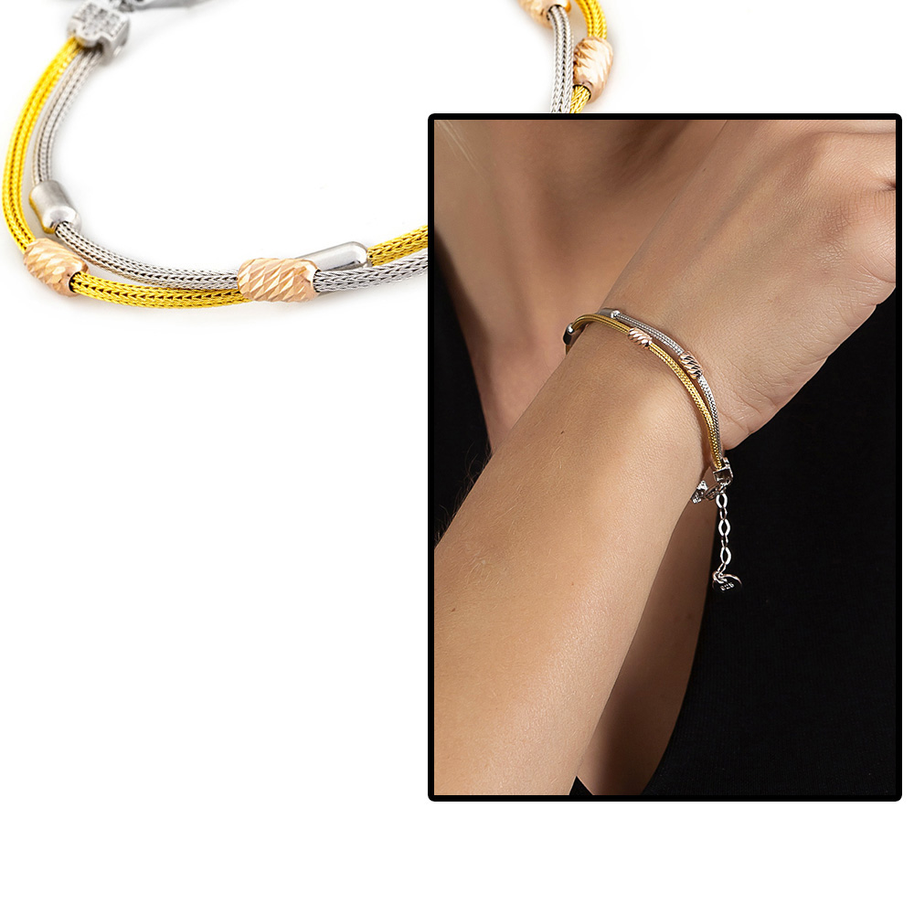 Çift Sıra Gümüş Altın Renkli 925 Ayar Gümüş Dorika Kadın Bileklik