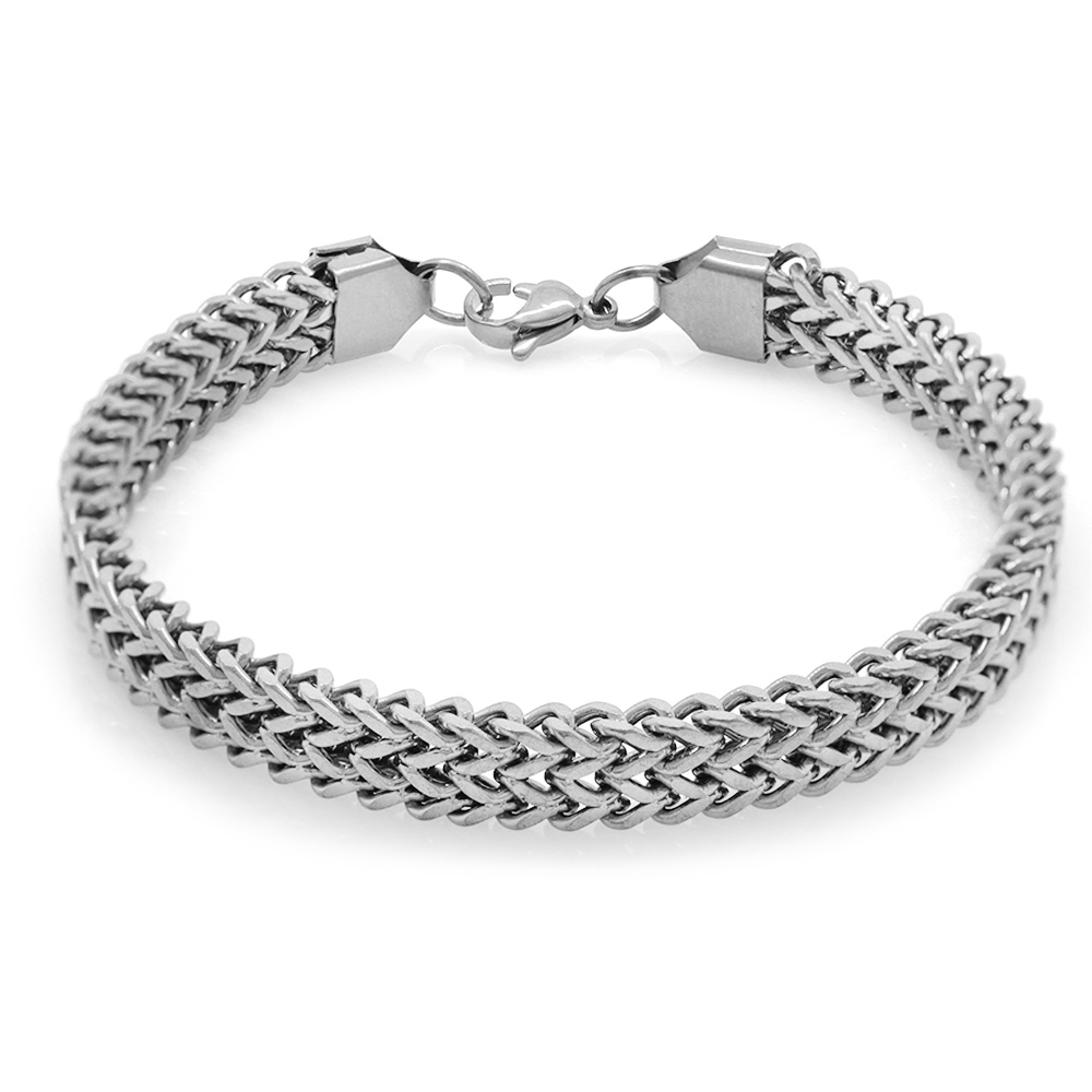 Çift Sıra Gümüş Renk Çelik Erkek Spiga Bileklik - 1