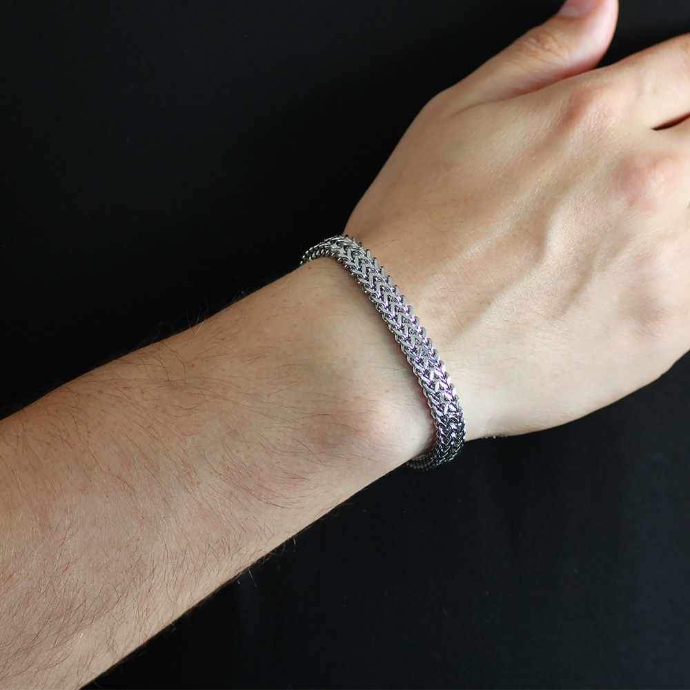 Çift Sıra Gümüş Renk Çelik Erkek Spiga Bileklik - 3