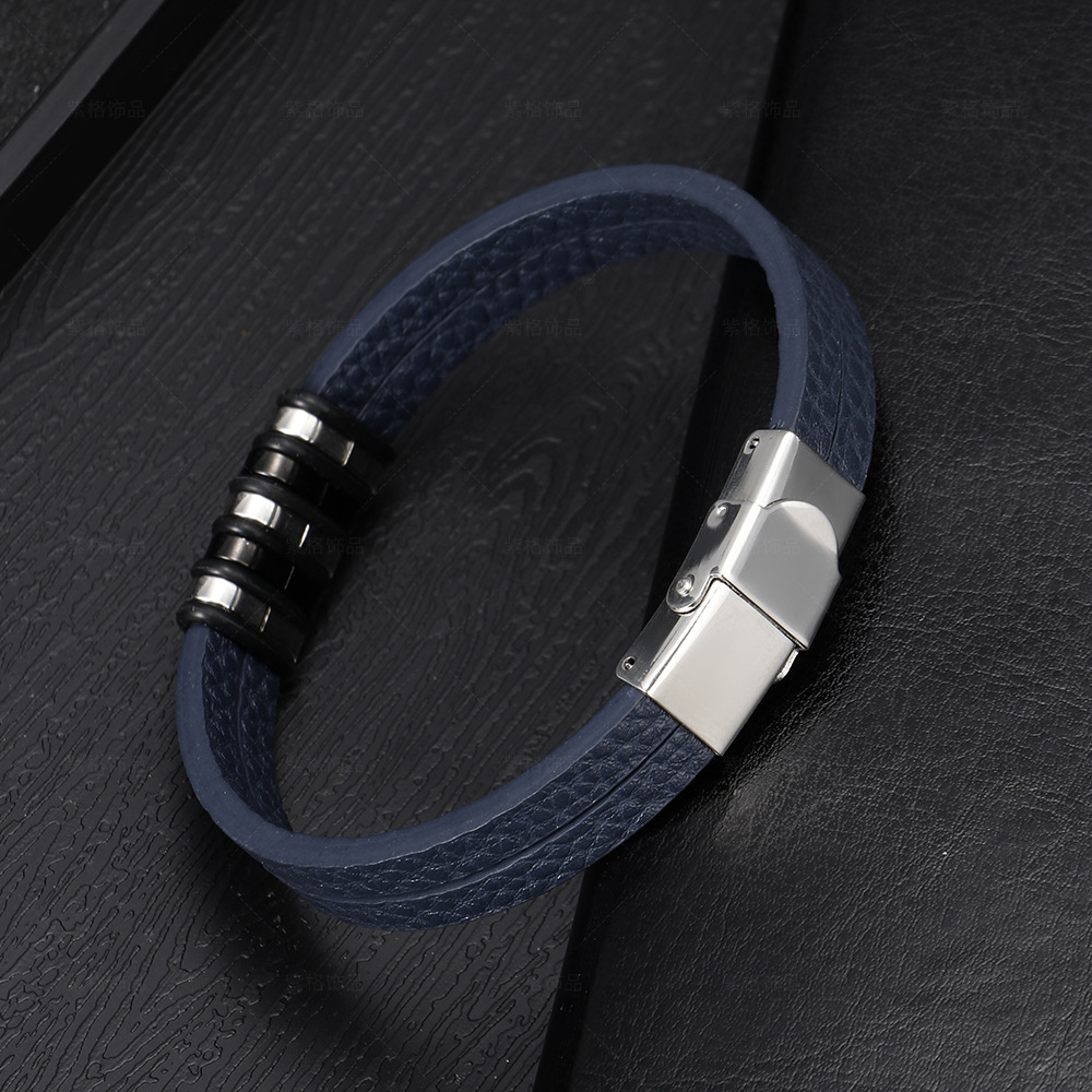 Çiftli Katmanlı Mavi Deri ve 316L Kalite Çelik Bileşim Erkek Bileklik