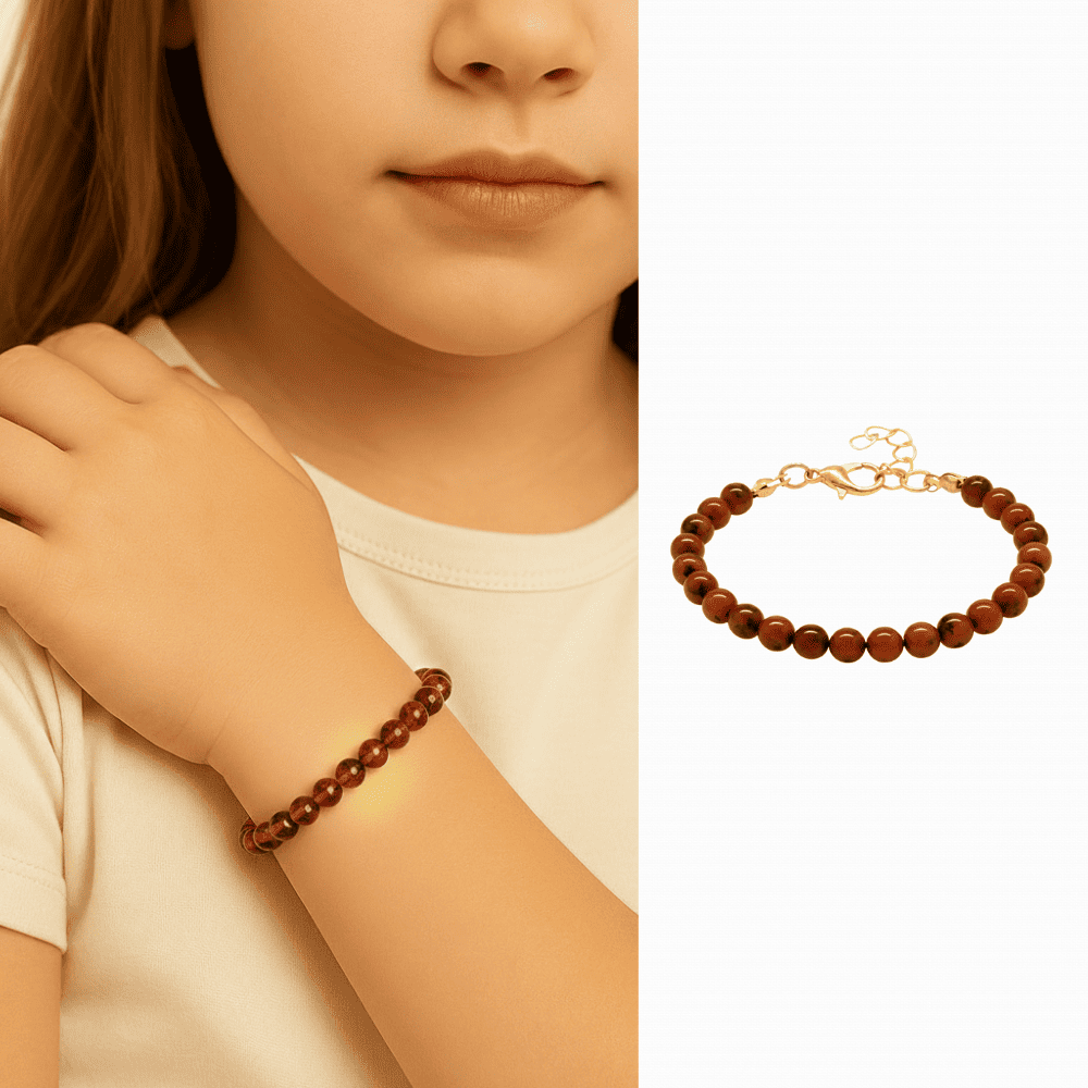 Çocuk Doğal Damla Kehribar Bileklik - Bal Rengi - Küre Kesim - Çelik Zincirli