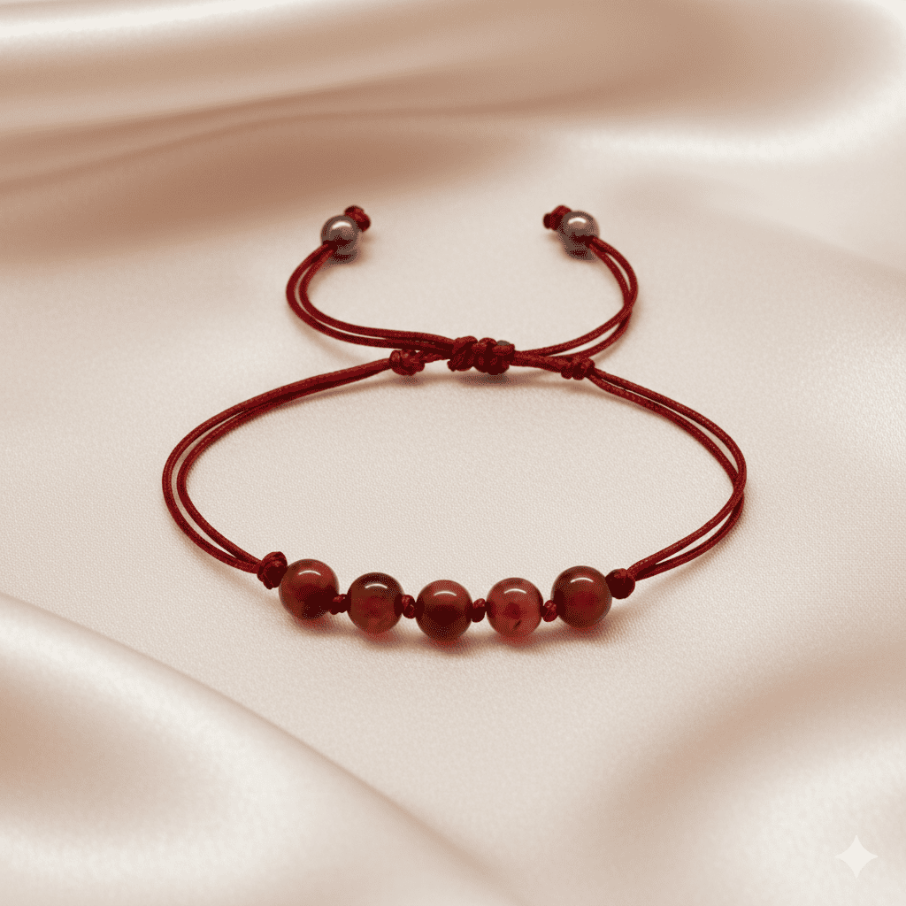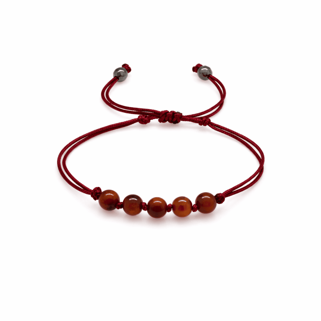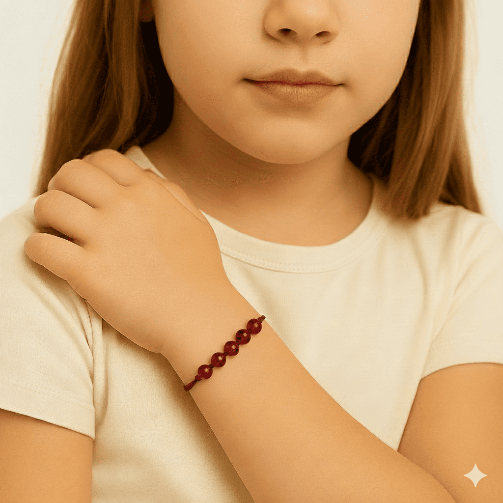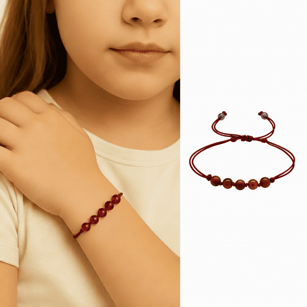 Çocuk Doğal Damla Kehribar Bileklik - Koyu Kırmızı - Küre Kesim - Makrome Örgülü