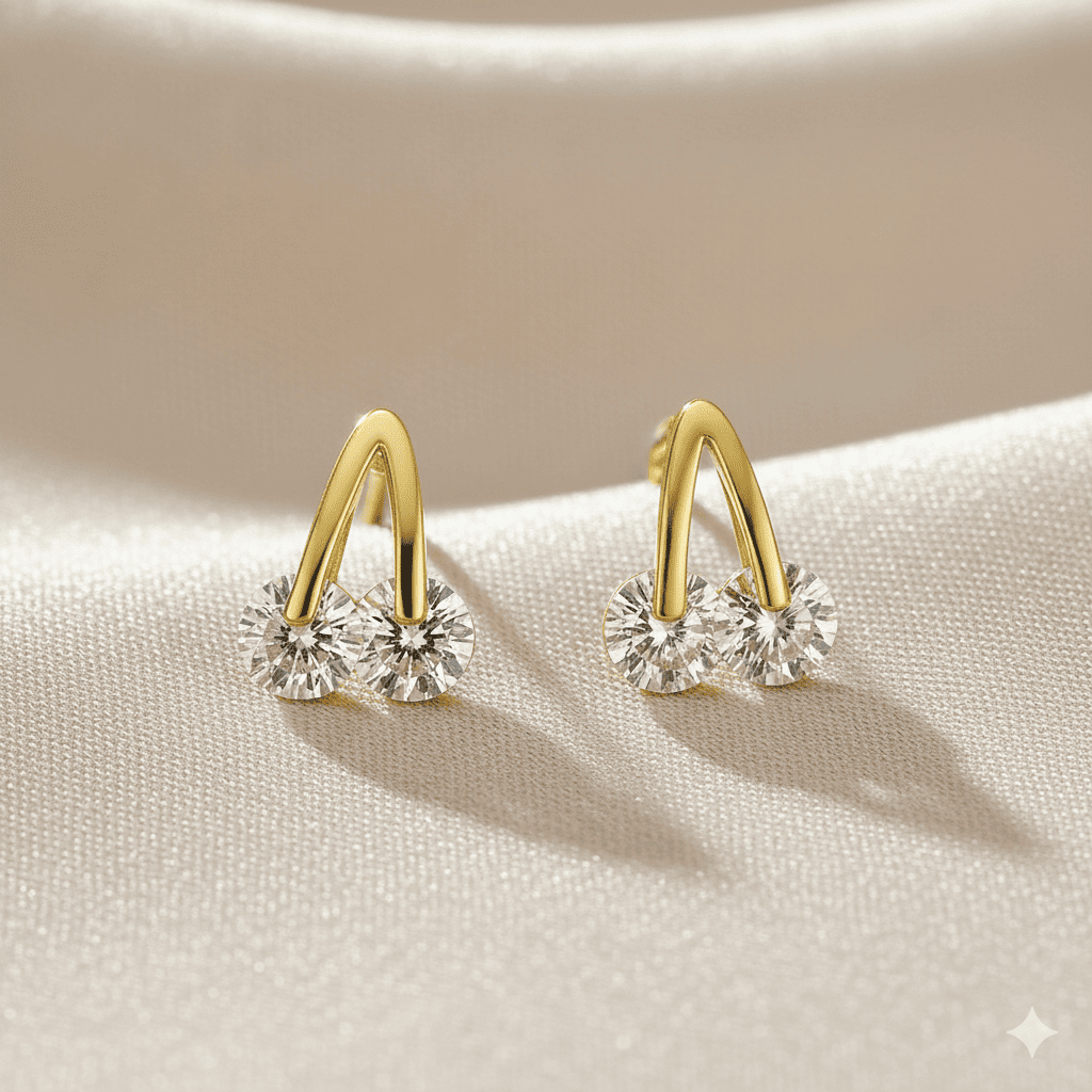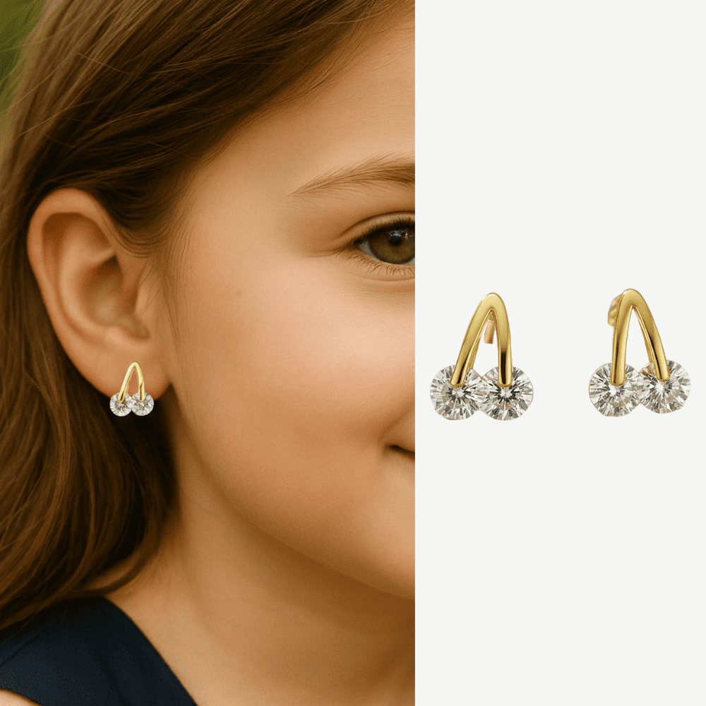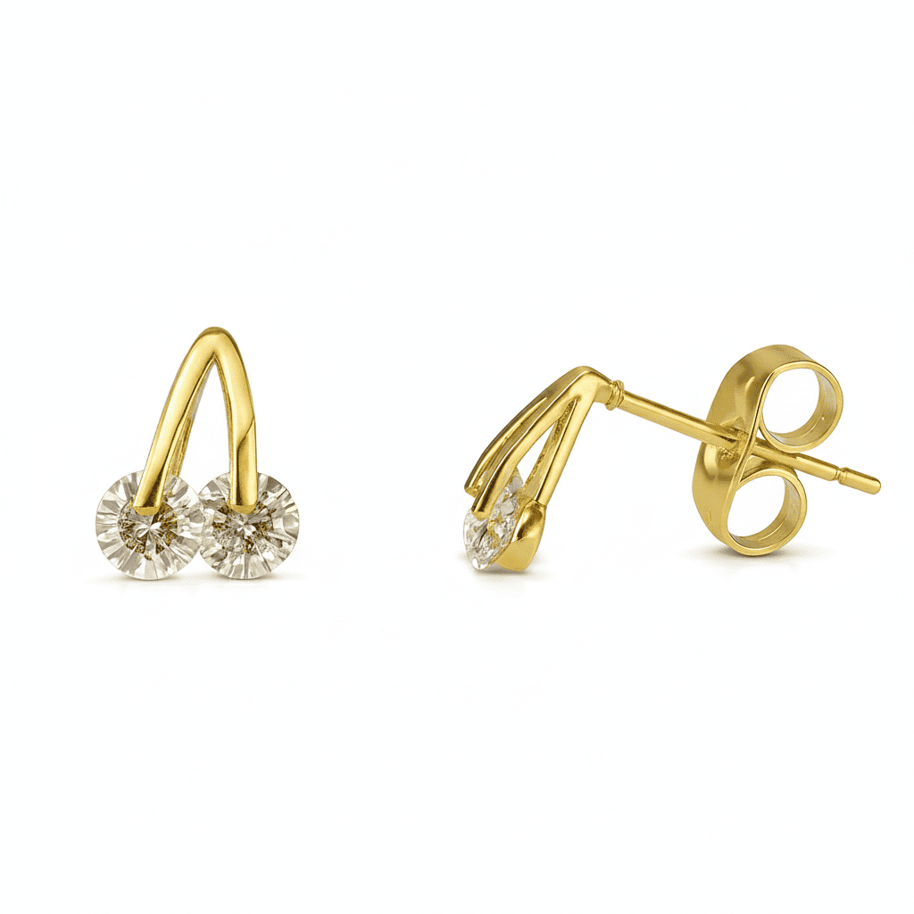 Çocuk Xuping Çelik Küpe - Kiraz Detaylı - Beyaz Zirkon Taşlı - Altın Renk