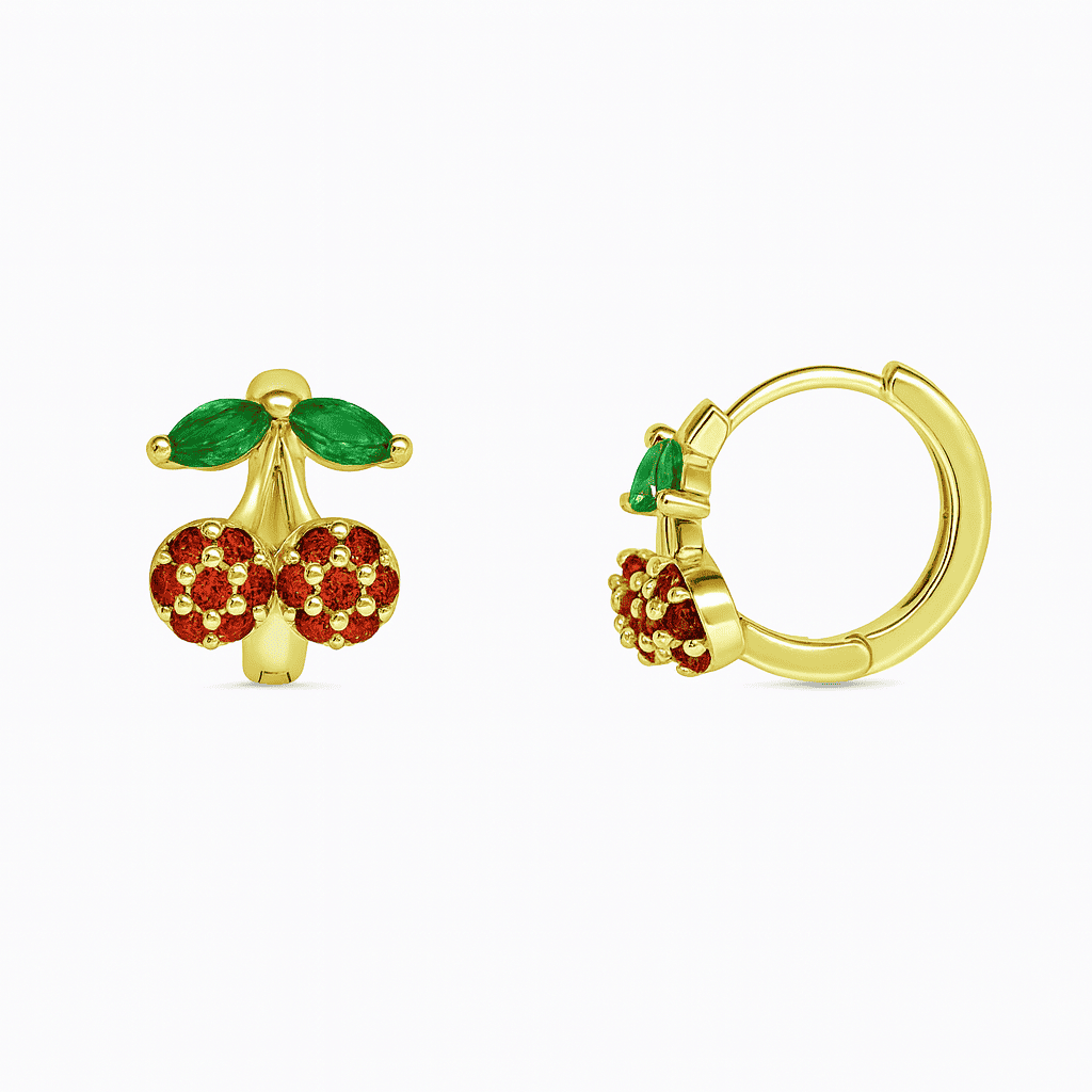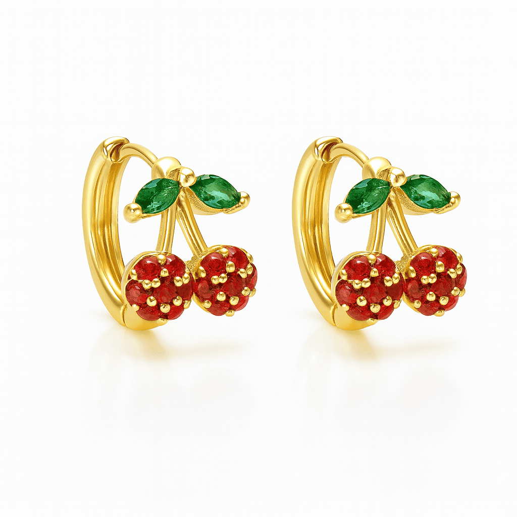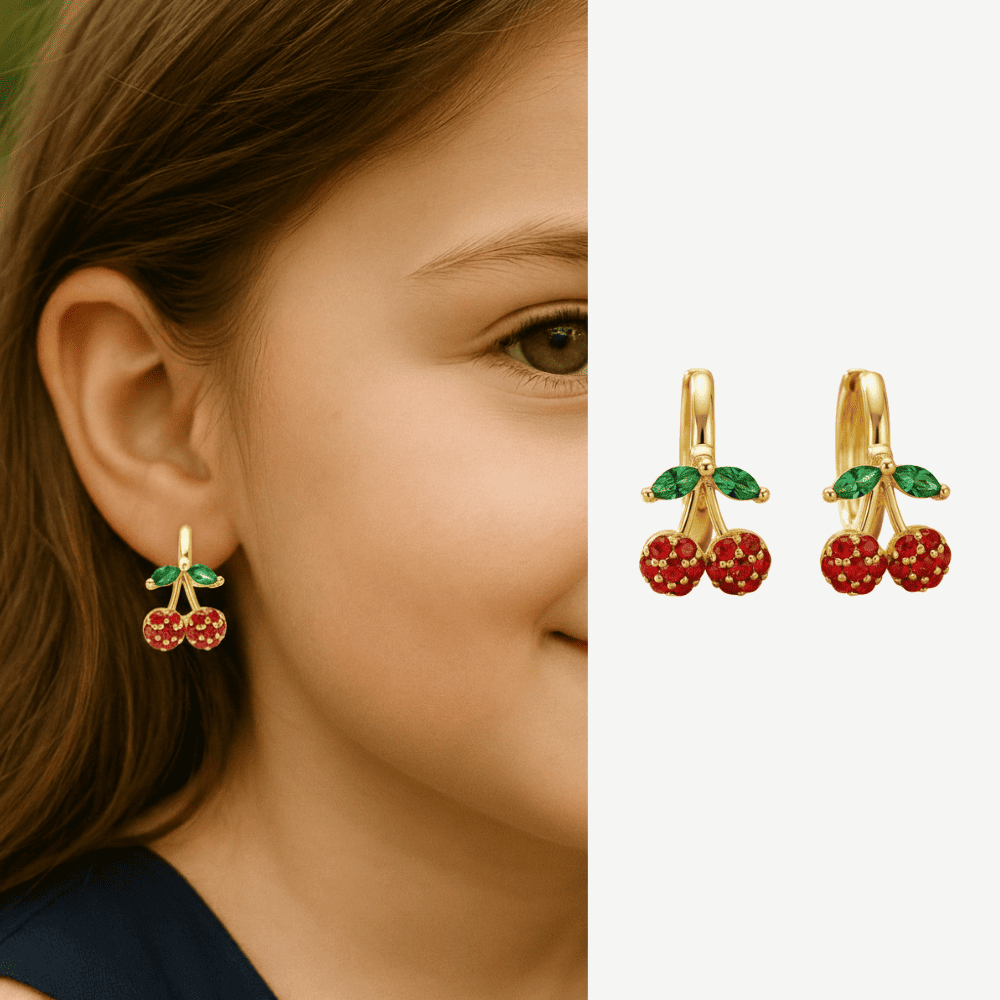 Çocuk Xuping Çelik Küpe - Kiraz Detaylı - Kırmızı Zirkon Taşlı - Altın Renk