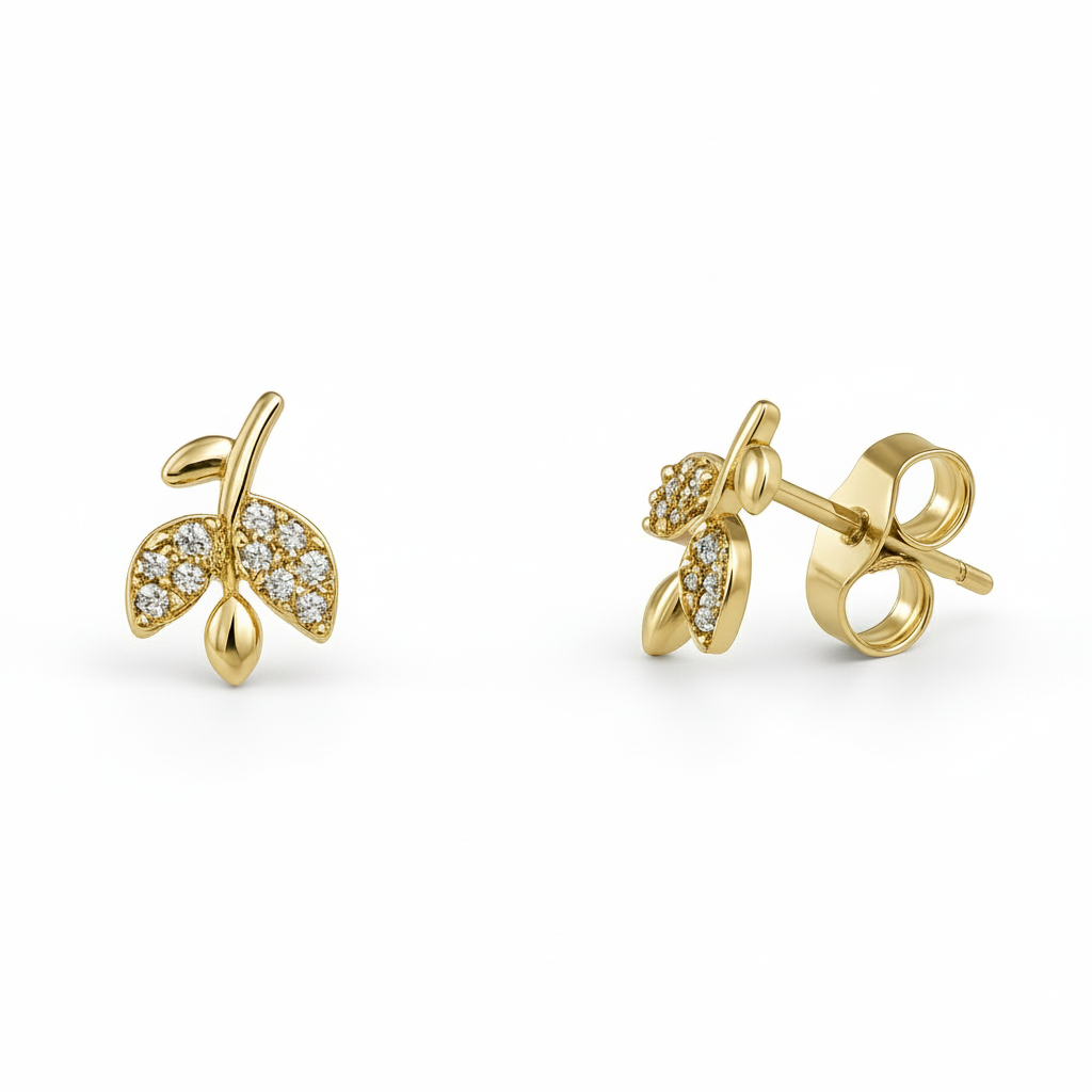Çocuk Xuping Çelik Küpe - Lale Detaylı - Beyaz Zirkon Taşlı - Altın Renk