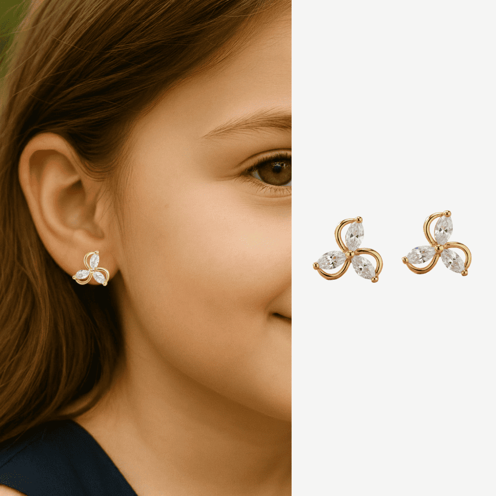 Çocuk Xuping Çelik Küpe - Rüzgar Gülü Tasarım - Beyaz Zirkon Taşlı - Altın Renk