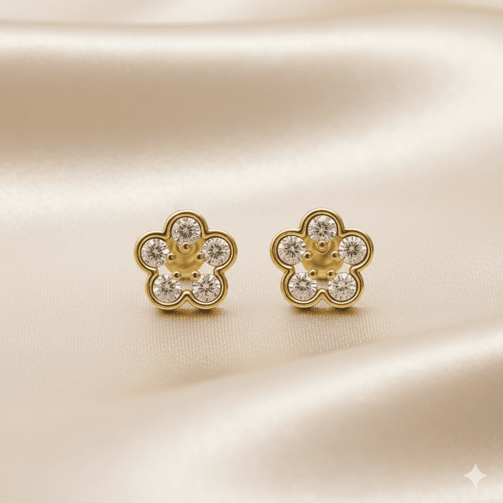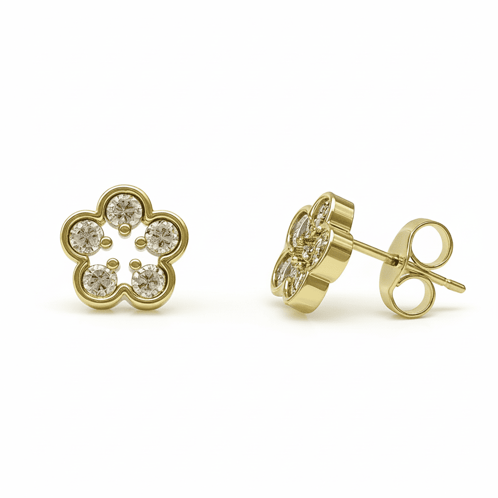 Çocuk Xuping Çelik Küpe - Yonca Yaprağı Tasarım - Beyaz Zirkon Taşlı - Altın Renk