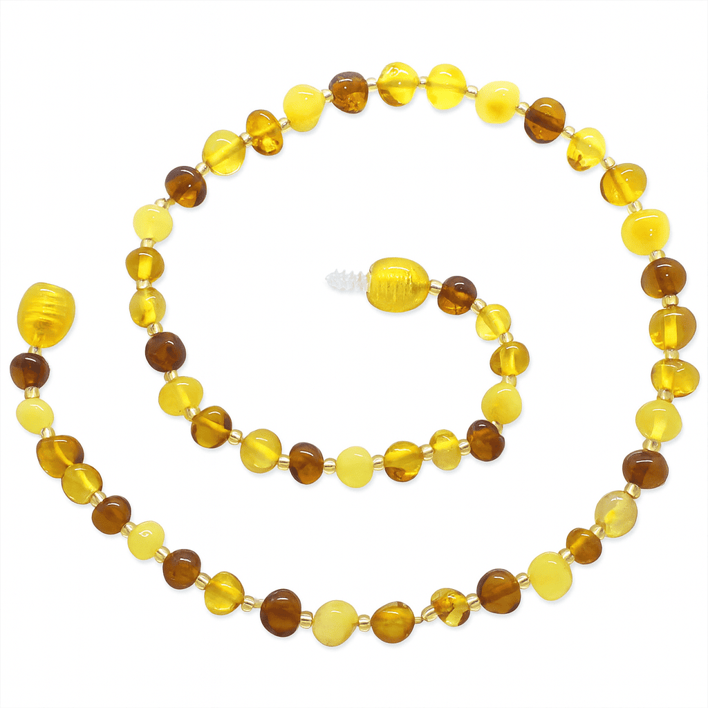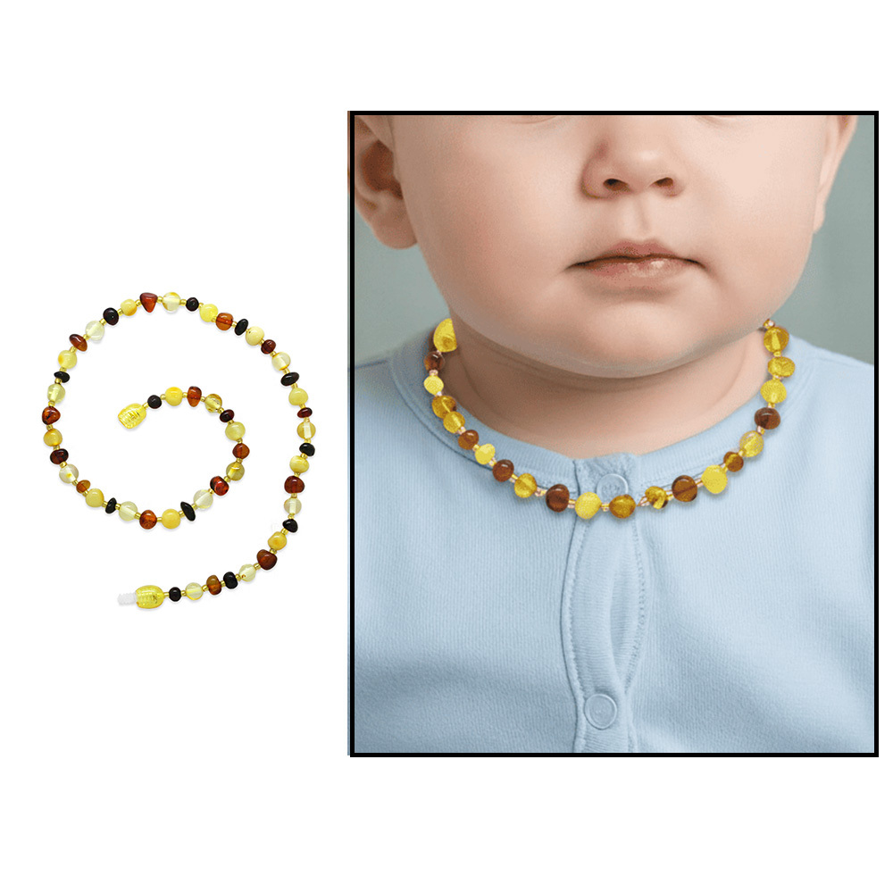 Exclusive Renk Hareli Doğal Damla Kehribar Taşlı Bebek Diş Kolyesi - 1