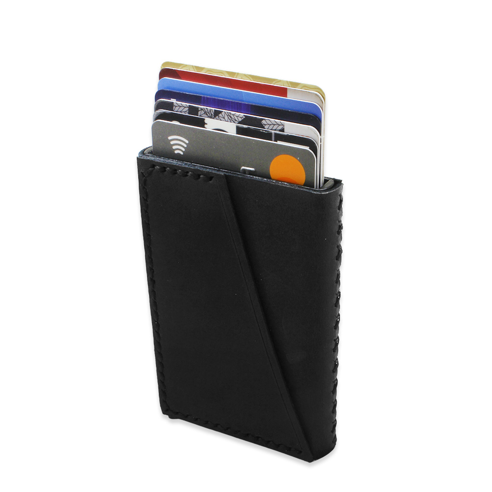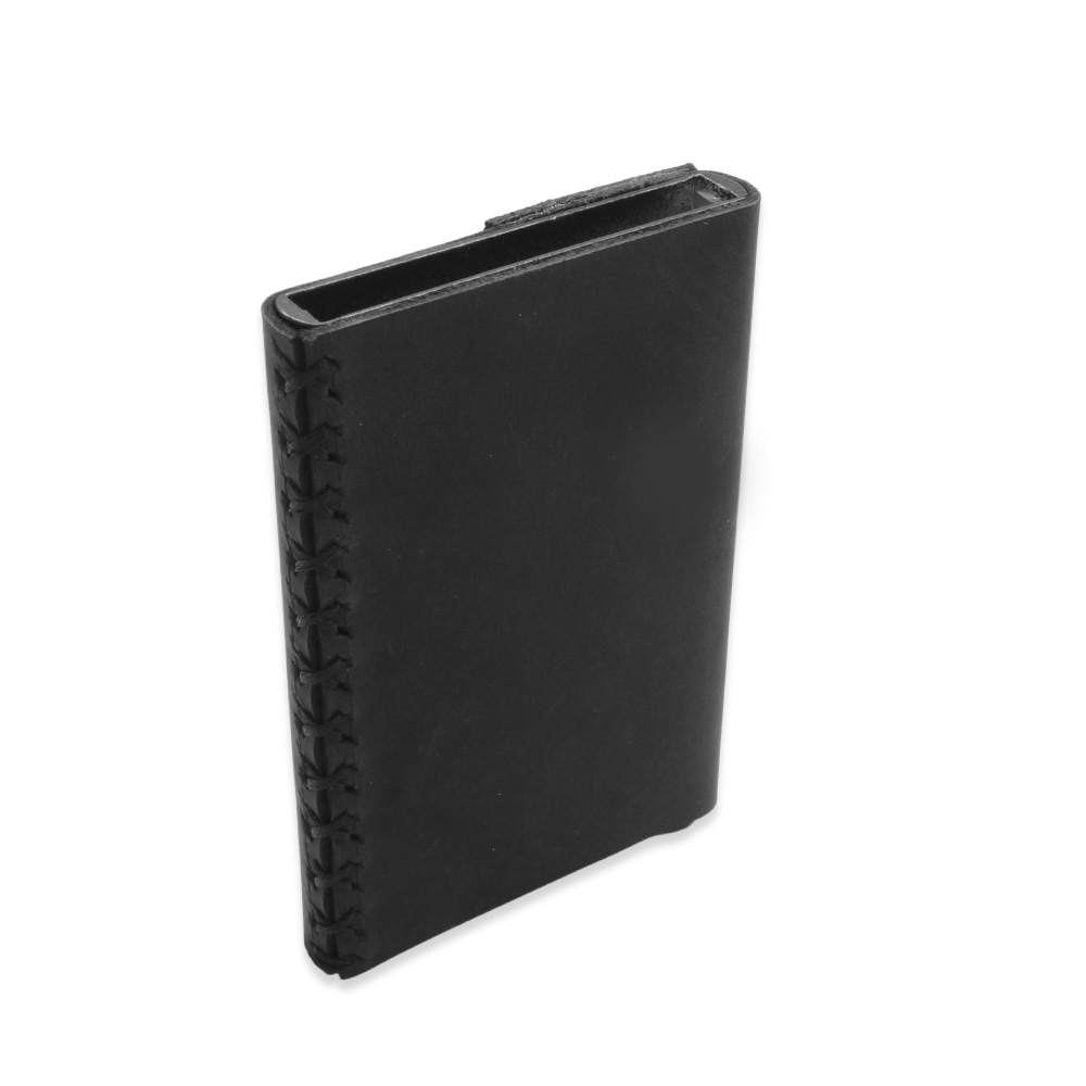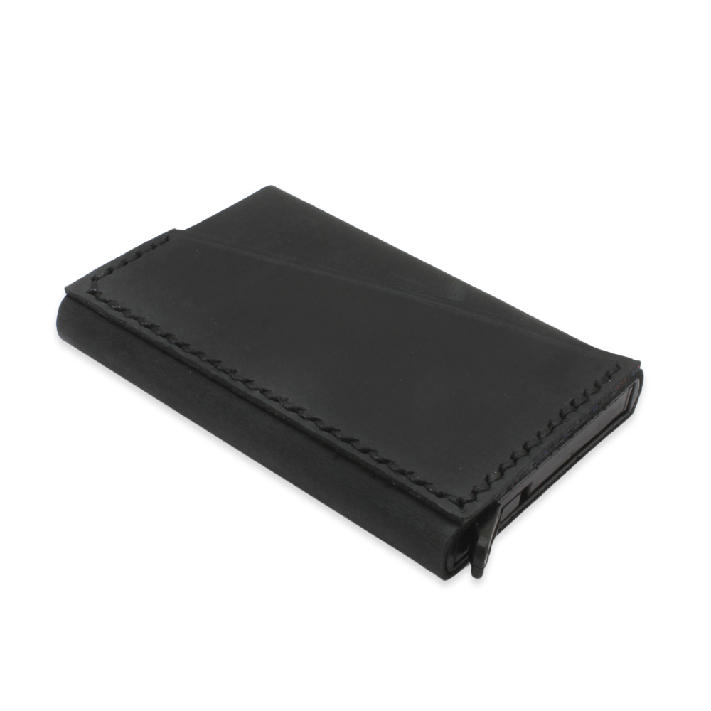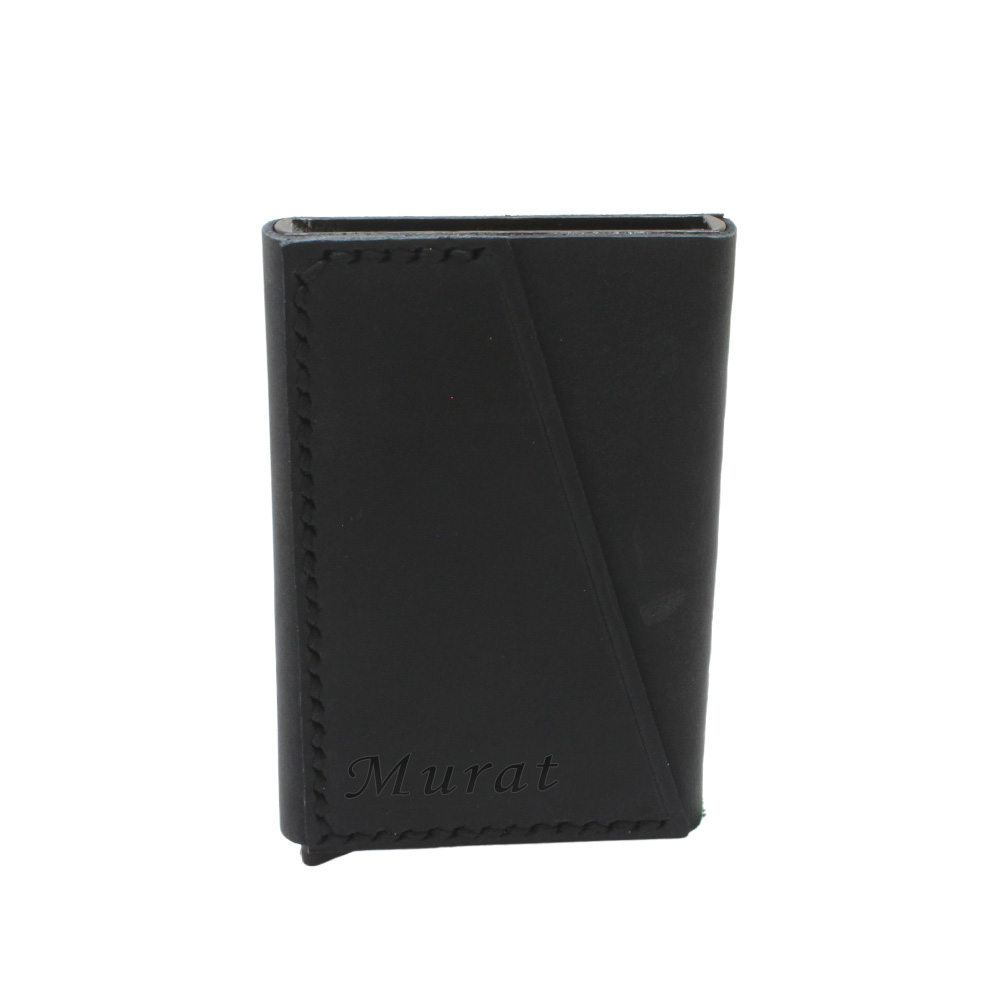 Tamamı El Dikişi Siyah Hakiki Deriden Mekanizmalı İsme Özel Yazılı Kartlık Cüzdan M1