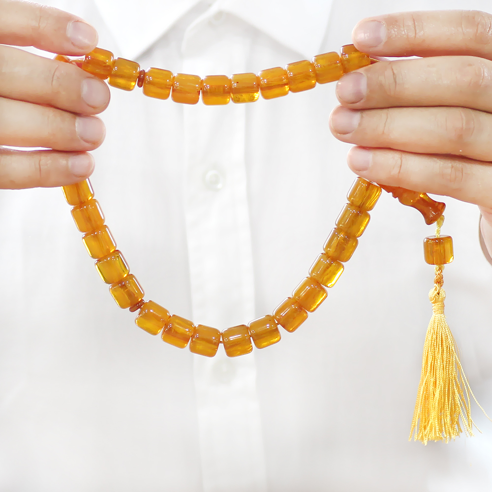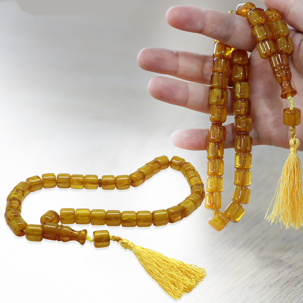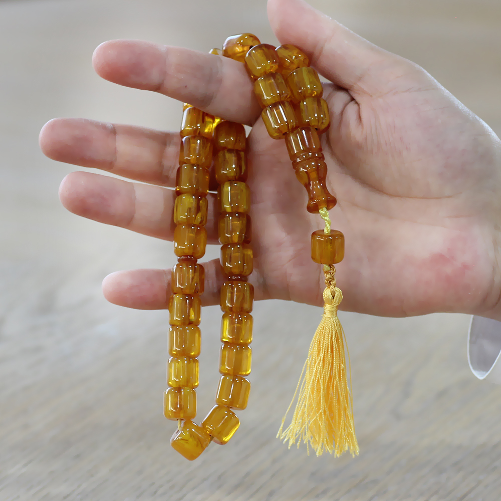 Çubuk Sıkma Kehribar Tesbih - Osmanlı Saray Püsküllü - Bal Rengi - Tekerlek Kesim