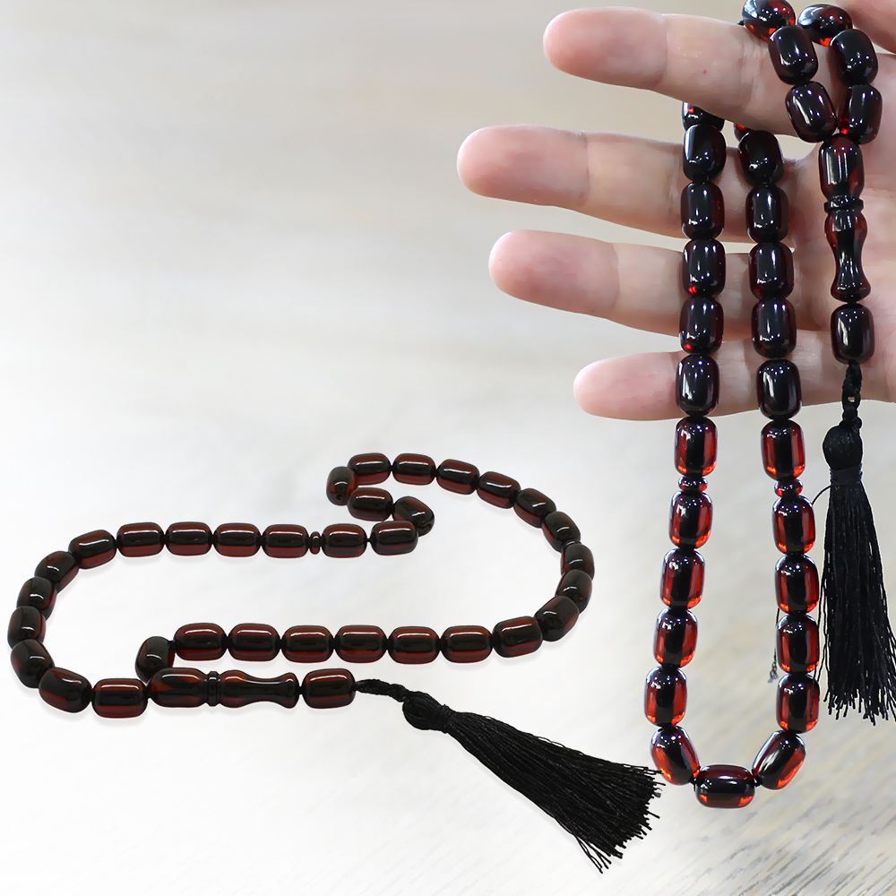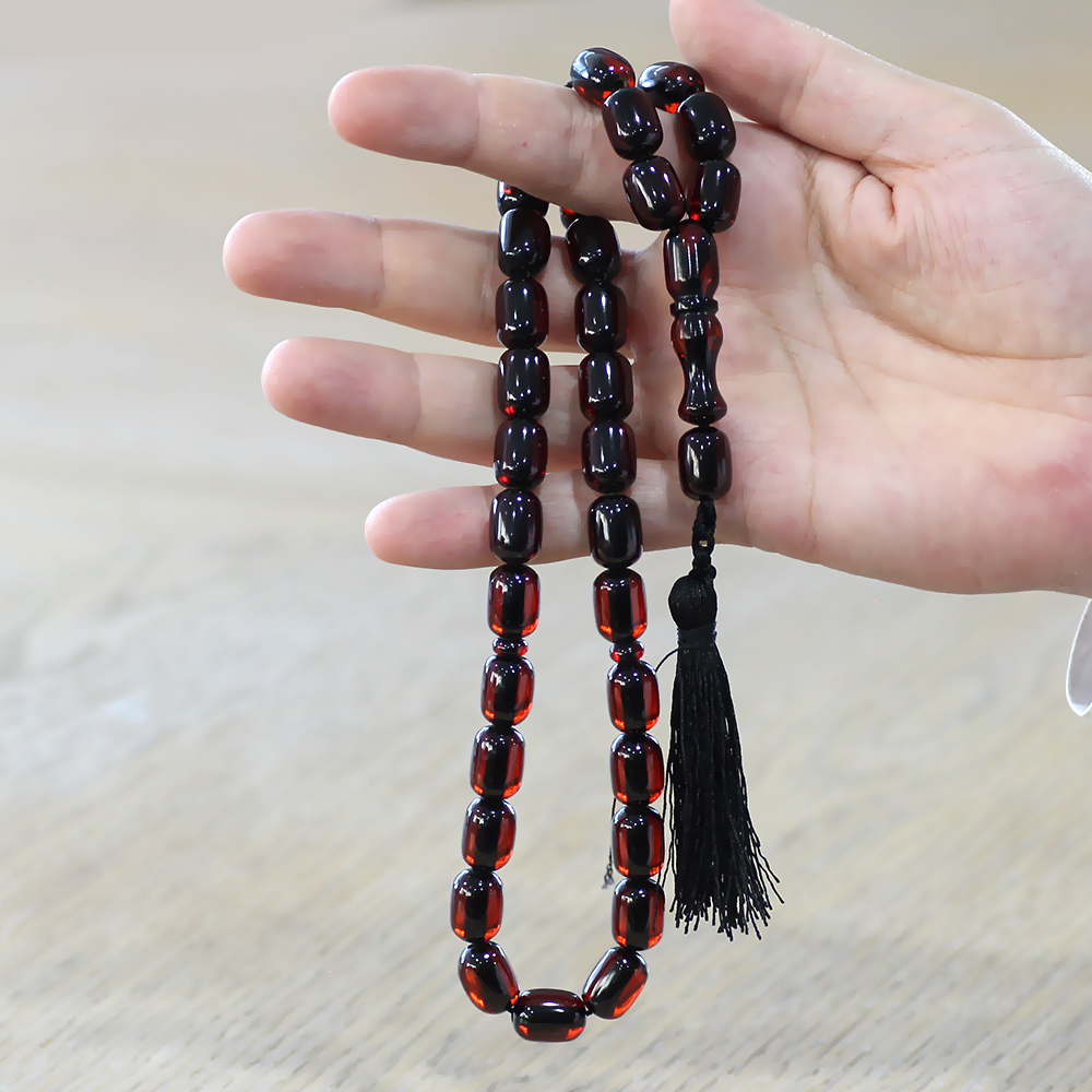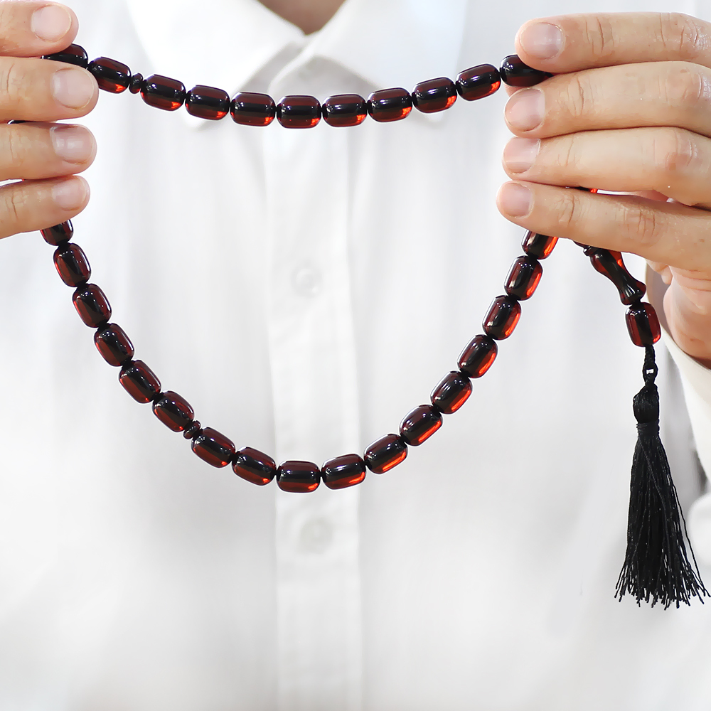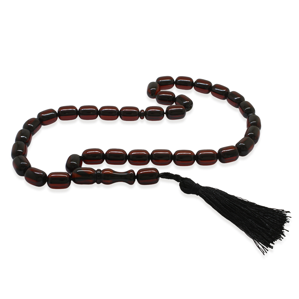 Çubuk Sıkma Kehribar Tesbih - Osmanlı Saray Püsküllü - Kırmızı Renk - Kapsül Kesim