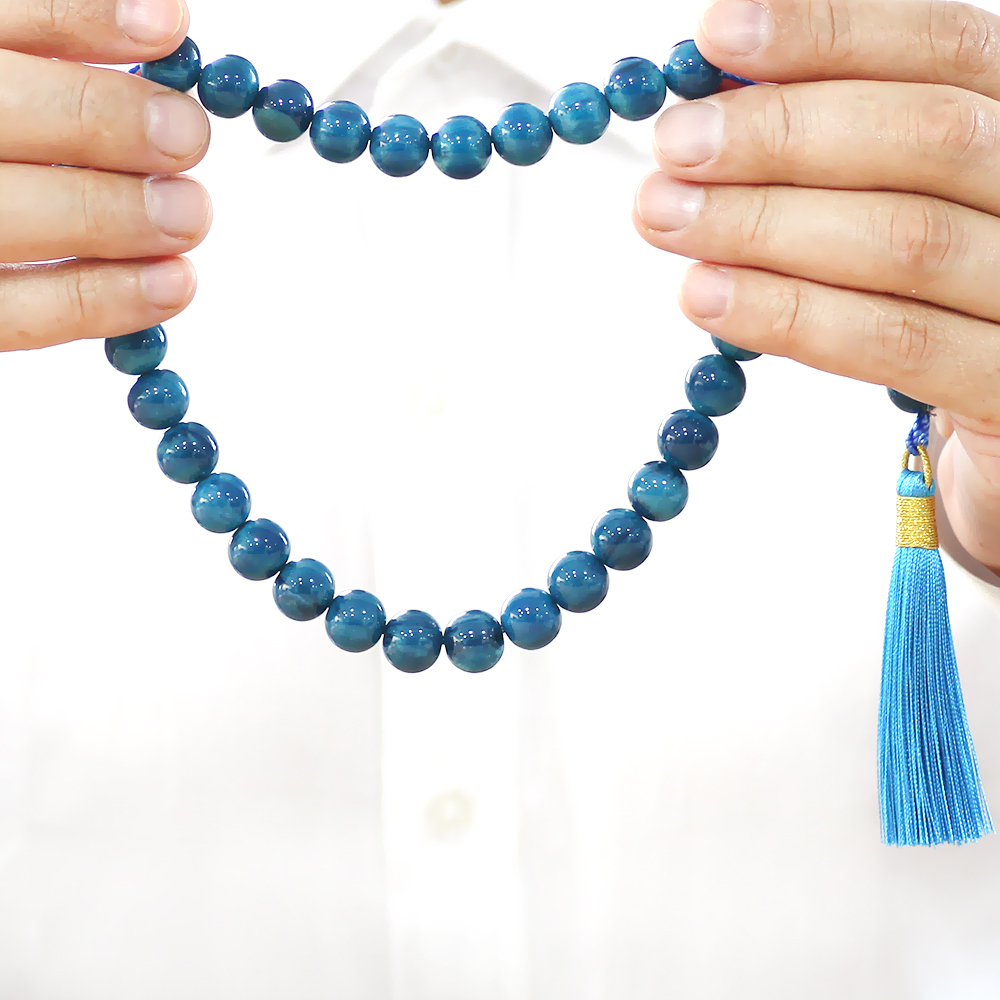 Çubuk Sıkma Kehribar Tesbih - Osmanlı Saray Püsküllü - Turkuaz Renk - Küre Kesim